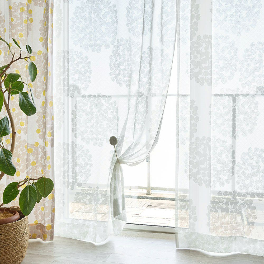 やわらかな手描きのタッチが印象的な<レースフロート>。模様作家・岡理恵子さんによる人気のファブリック<フロート>が、軽やかなレースカーテンになりました。透け感のある生地に白一色で描かれたアジサイ柄は、大柄でも派手すぎず、ナチュラルでやさしい印象に。日差しを受けてふわっと浮かびあがる模様が、窓辺にやわらかな時間を運んでくれます。