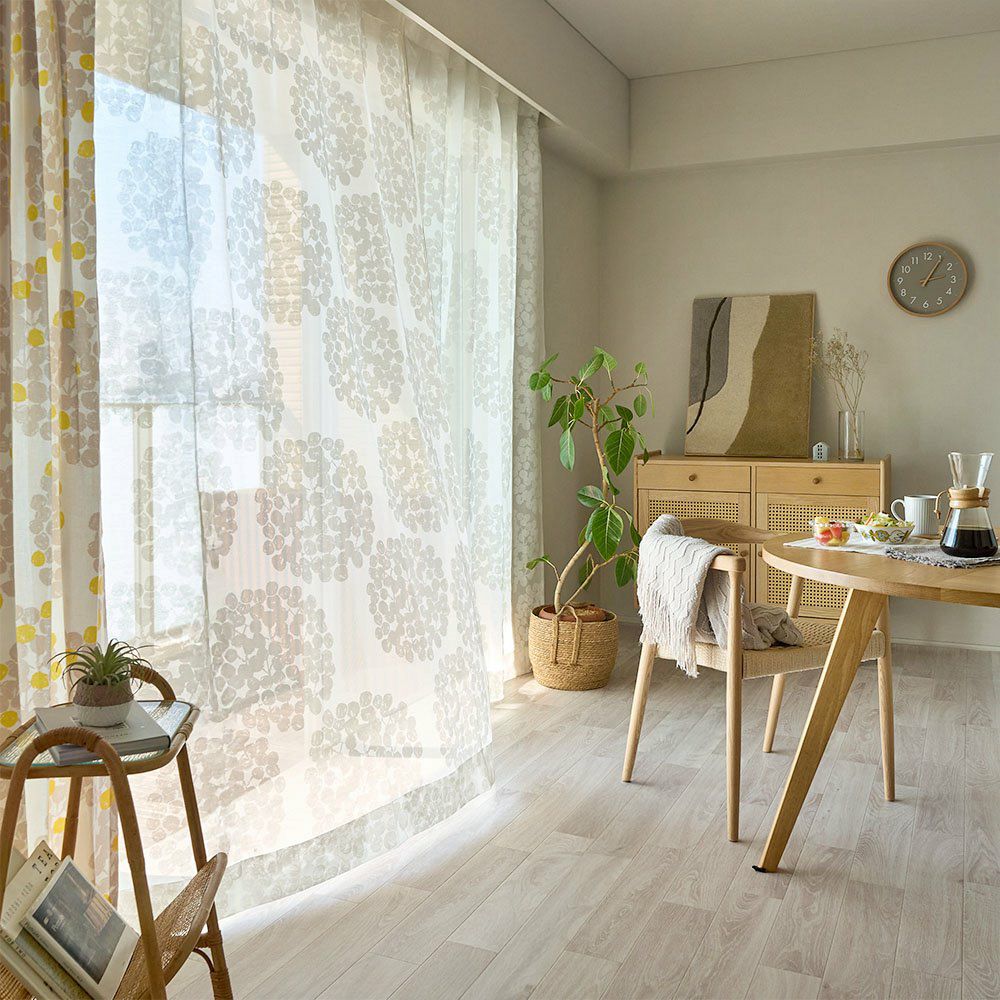 ふと差し込んだ光が、レース越しに模様を描く。そんな何気ない瞬間も、<レースフロート>があれば心に残る風景に変わります。白のアジサイ柄がそっと浮かび上がるたび、空間がやさしく整い、気持ちもふわりとほぐれていくよう。ただそこにあるだけで、暮らしに静かなときめきを添えてくれるカーテンです。あなたの窓辺にも、そんなやさしい彩りを取り入れてみませんか?
