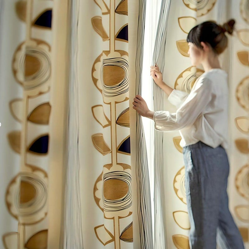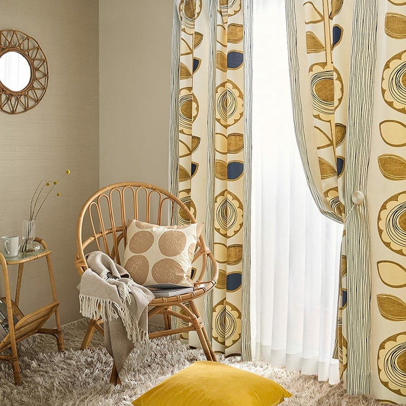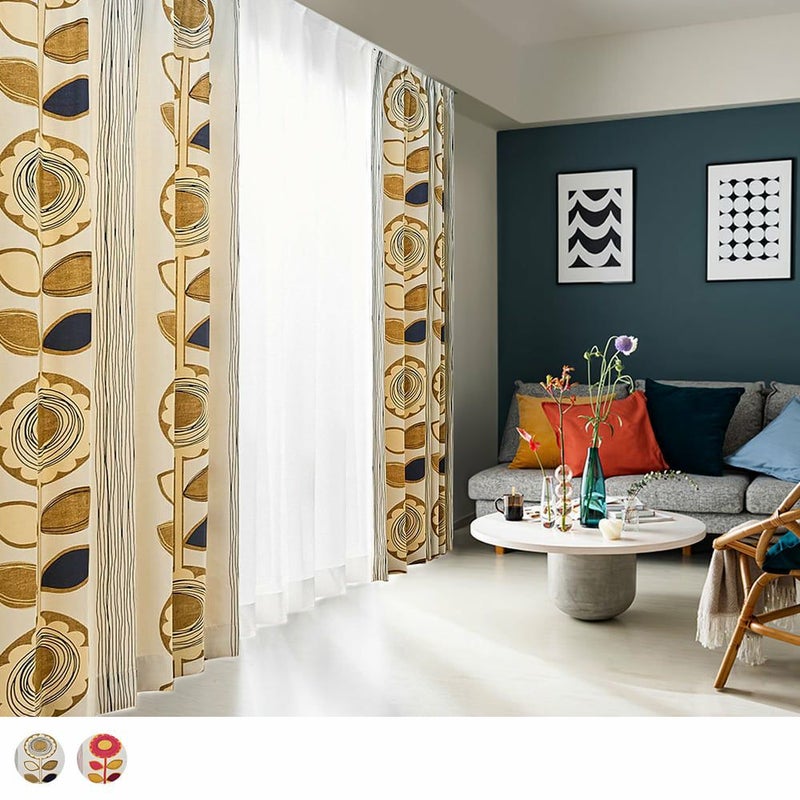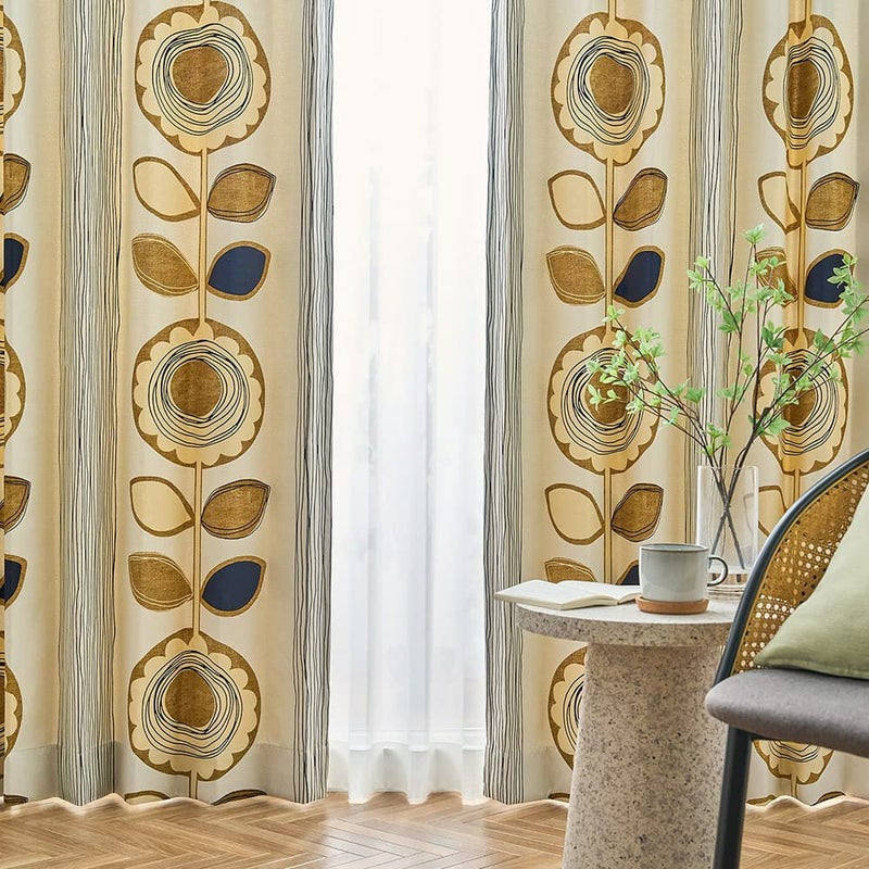 ヒマワリのモチーフを大胆にあしらった、エネルギッシュな北欧風の遮光カーテン<SUN FLOWER(サンフラワー)> 大きなヒマワリ柄が部屋を北欧テイストに変身させてくれます。