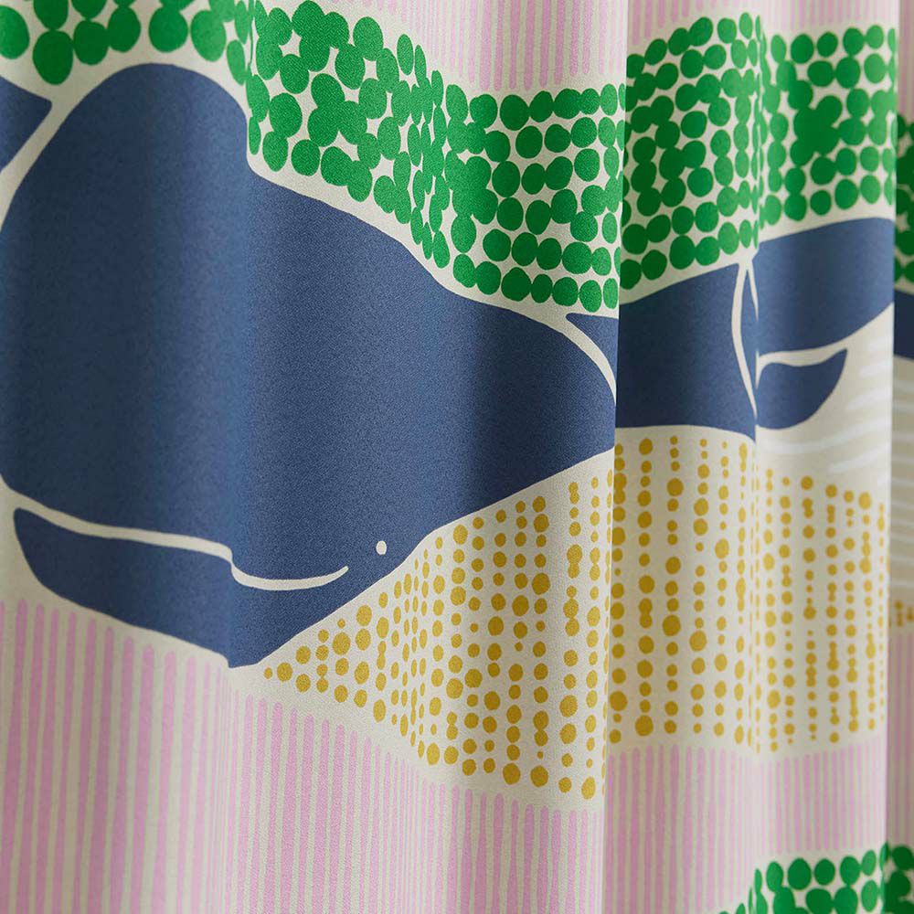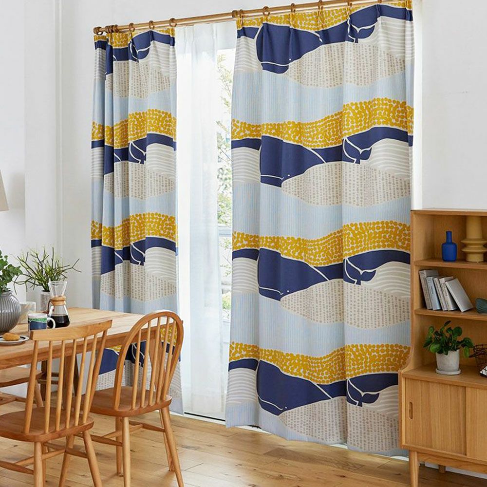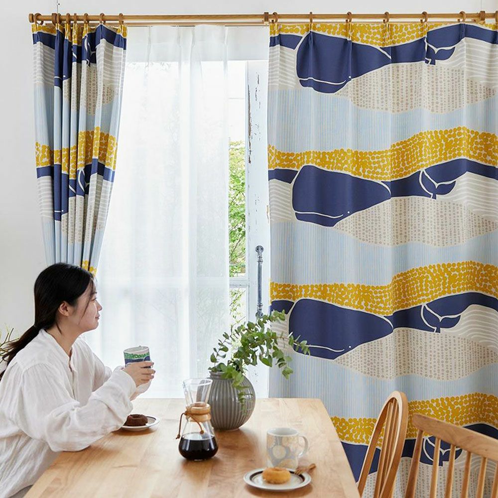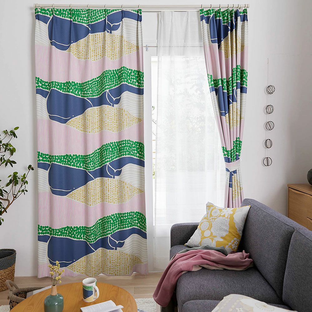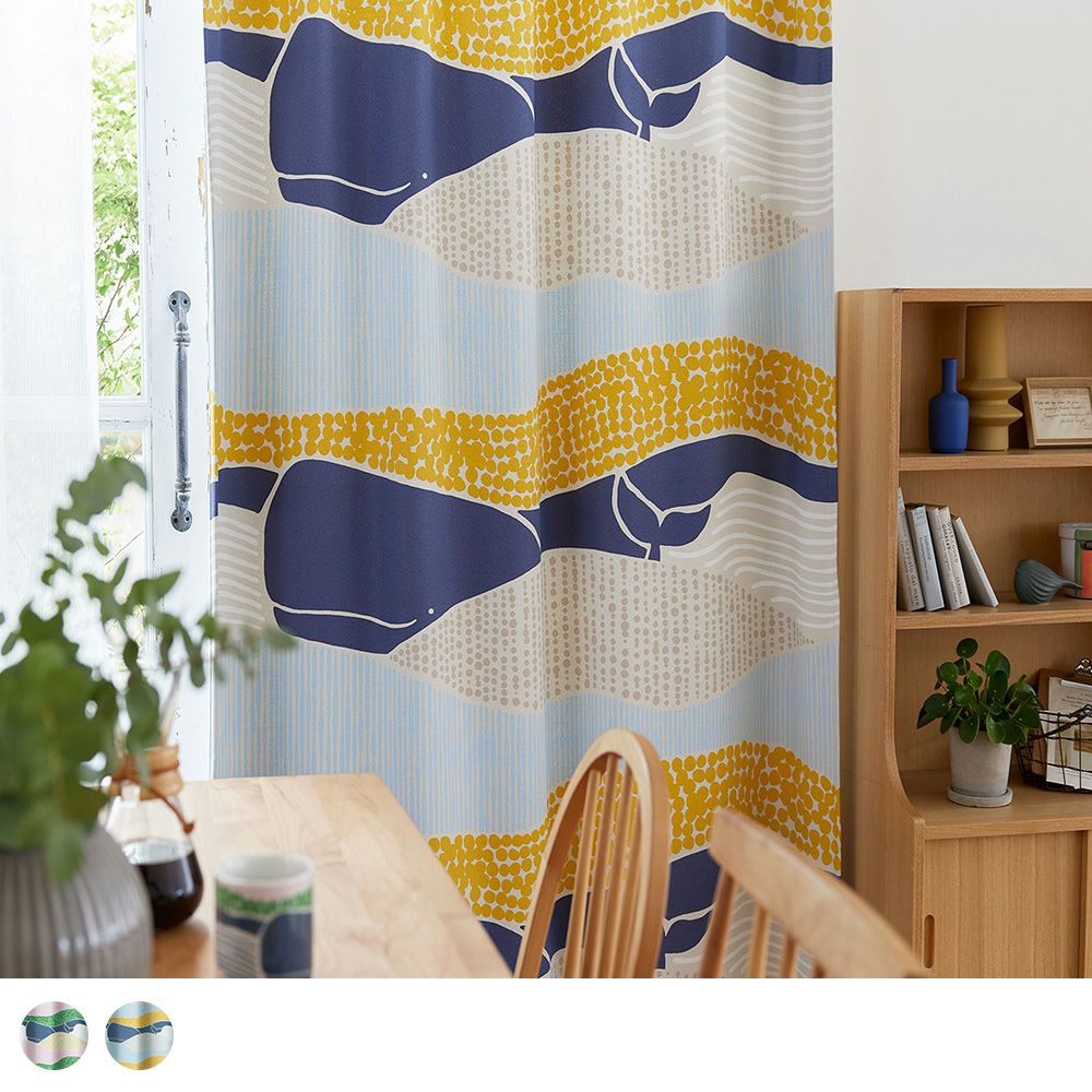 カーテンいっぱいにのびのびと描かれた、カラフルなクジラの姿がたまらなく愛らしい1枚です。大人も子供も楽しめるデザインとカラーリングが魅力で、リビングに掛ければなんだかいつもより会話が弾みそう♪