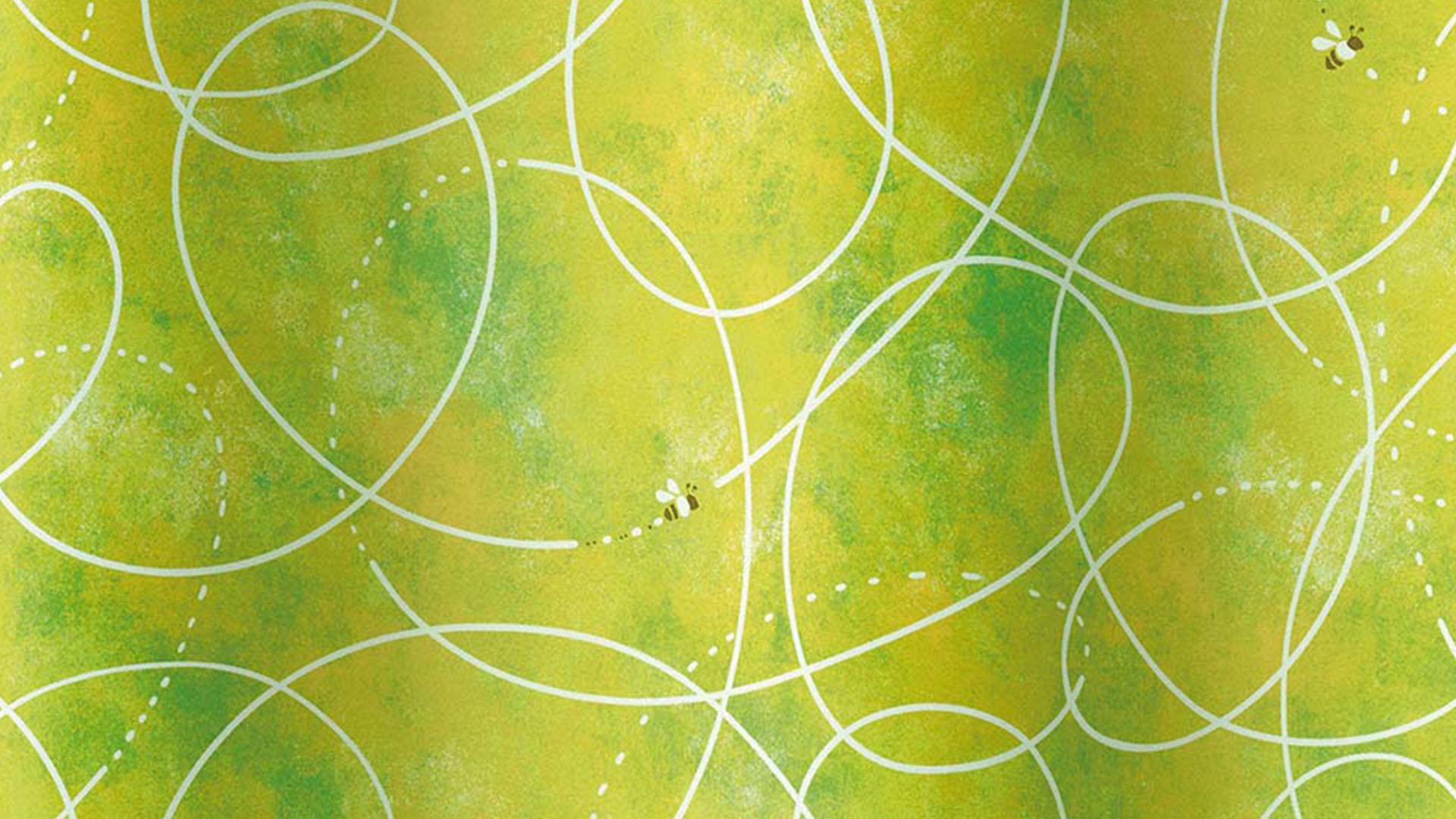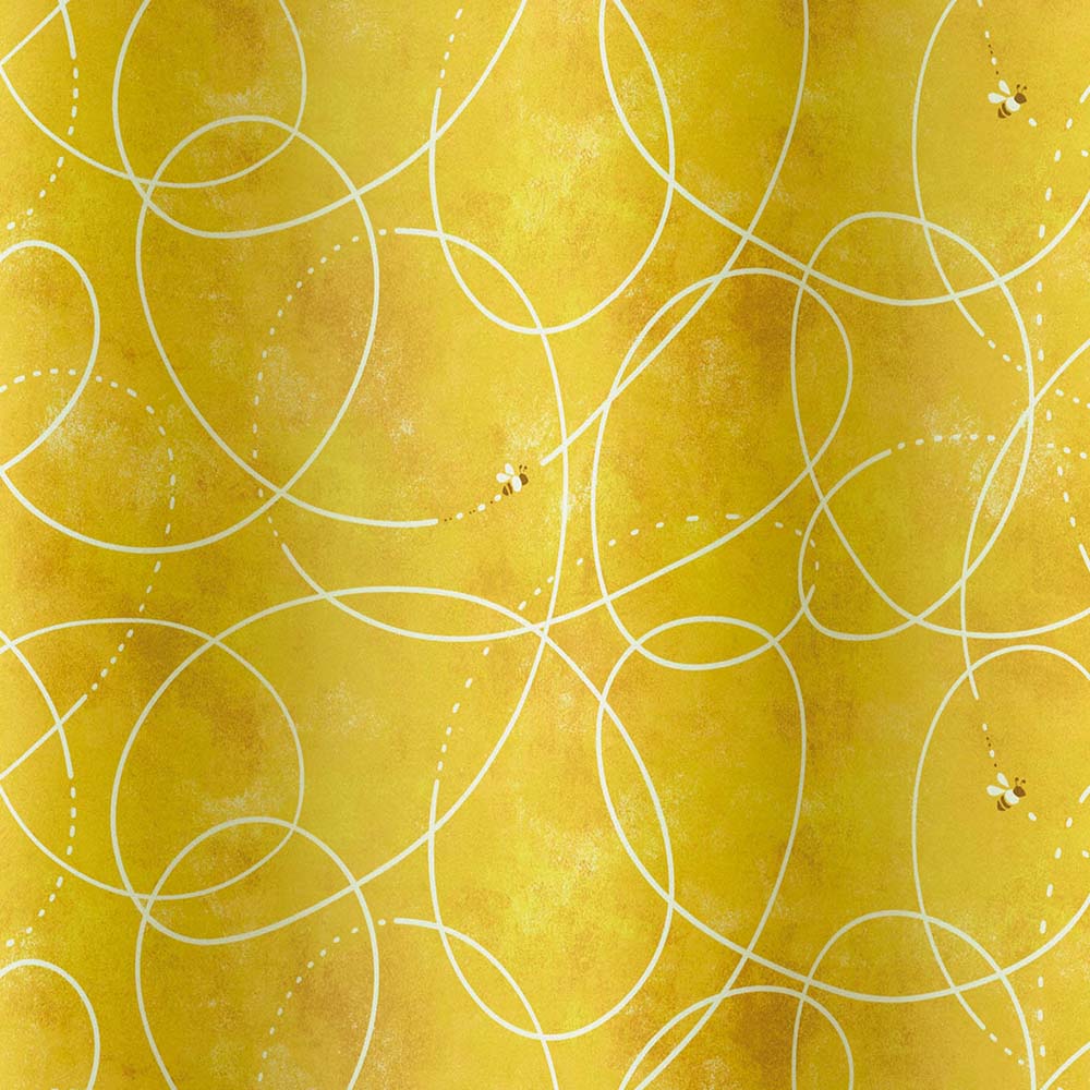 ぶんぶんと飛び回るミツバチの軌跡を描いた【デザインライフ】の遮光カーテン。