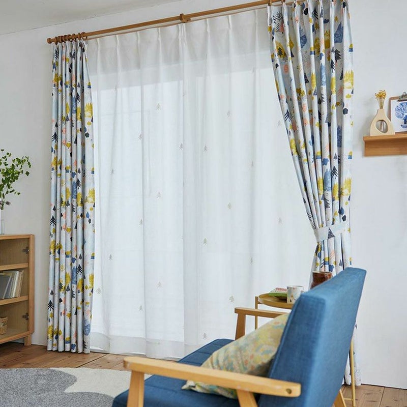ホワイトのボイルレースカーテンは、ナチュラルな北欧インテリアとの相性抜群。木調家具や優しい雰囲気のファブリックとマッチして、心地良い空間を演出してくれます。イエティともみの木の小さな刺繍もアクセントに♪そんなほっこりかわいい「イエティボイル」を取り入れて、お部屋を北欧スタイルに♪