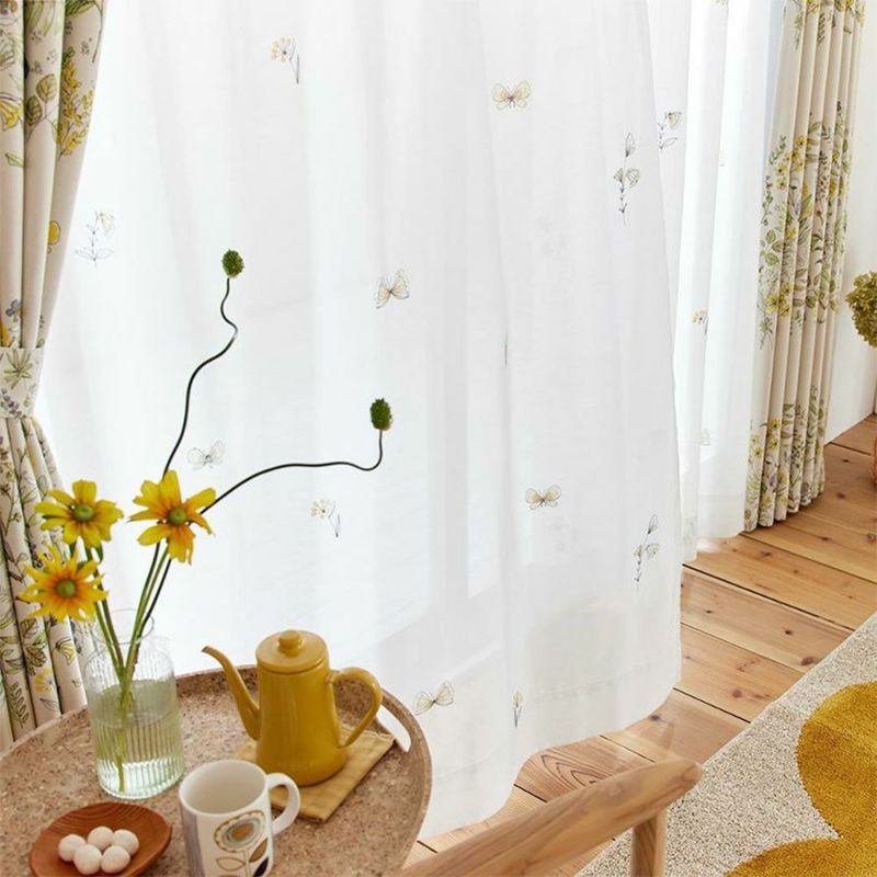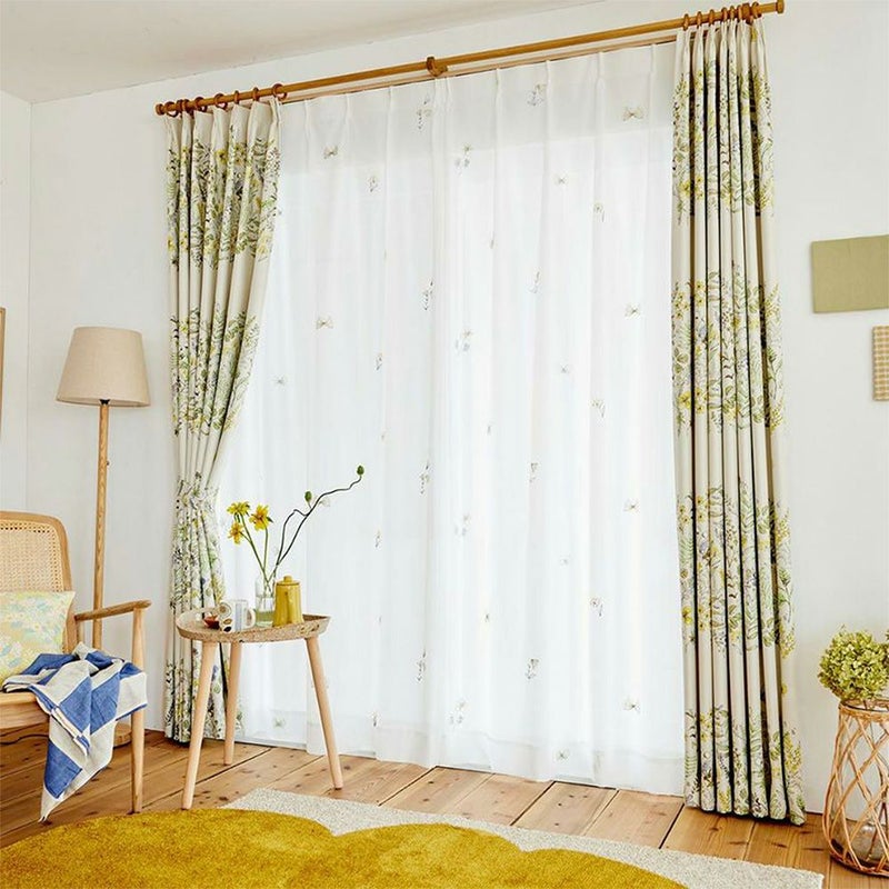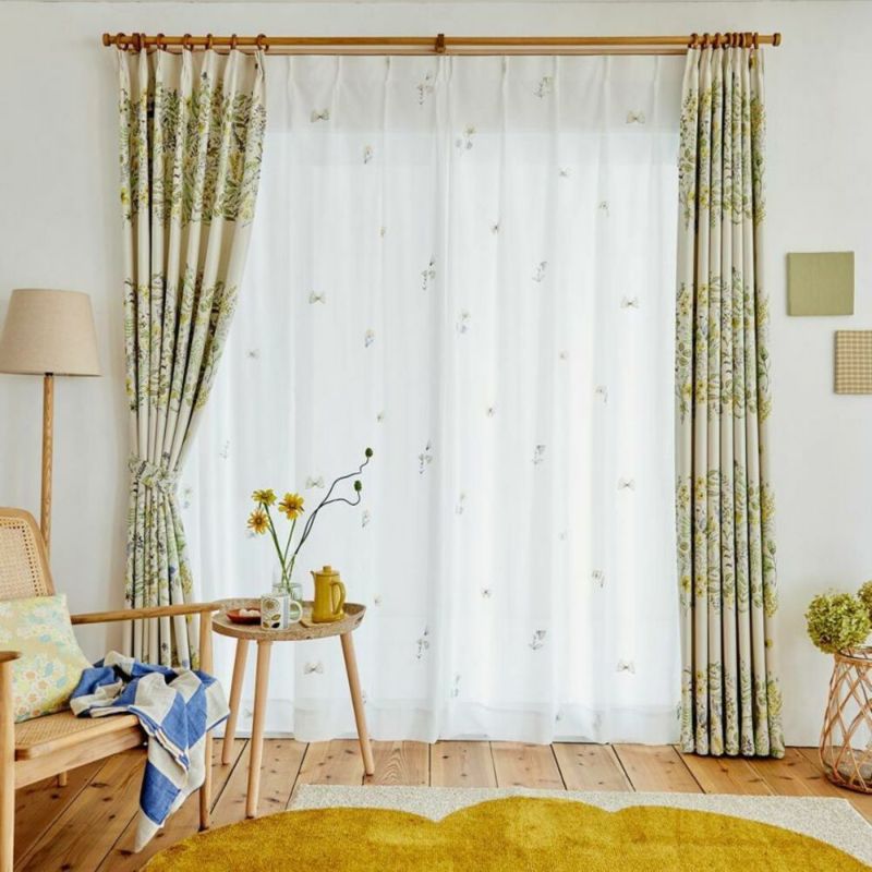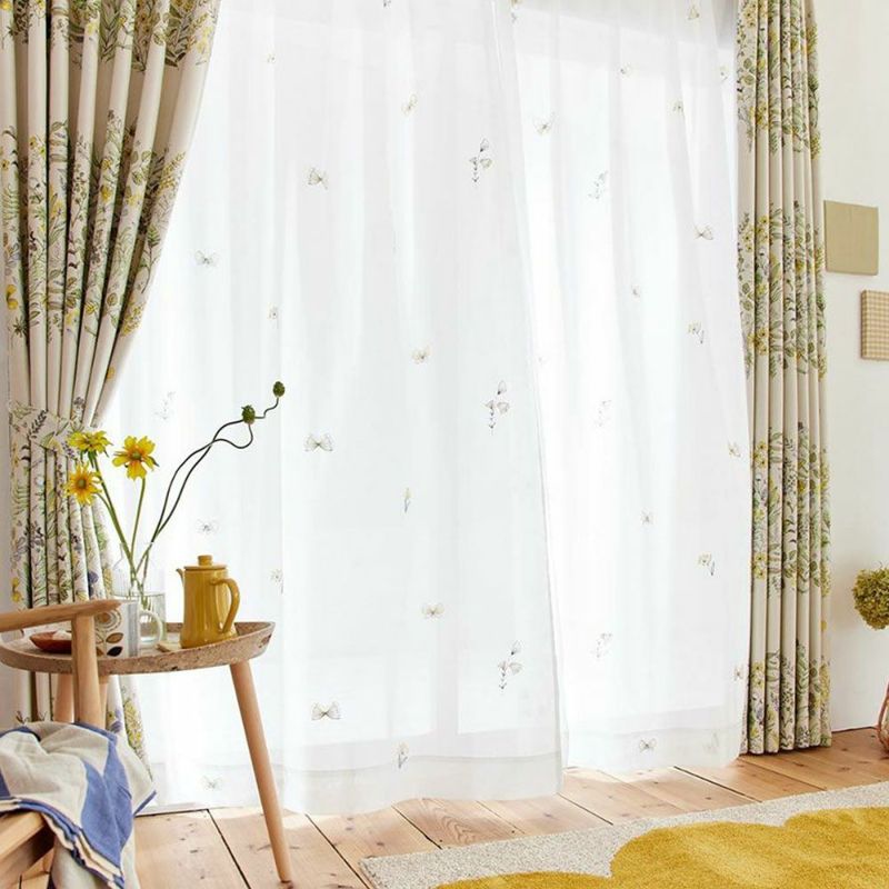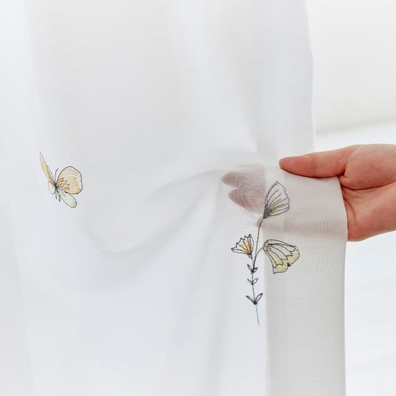 ふわりと風にそよぐレースに刺繍された蝶は、まるでお部屋を軽やかに飛んでいるかのよう。何だかこころまで軽やかな気持ちに♪小さくてかわいらしい蝶や草花と、風に揺られるレースカーテンの姿が、ほっこり幸せな気分にしてくれます。
