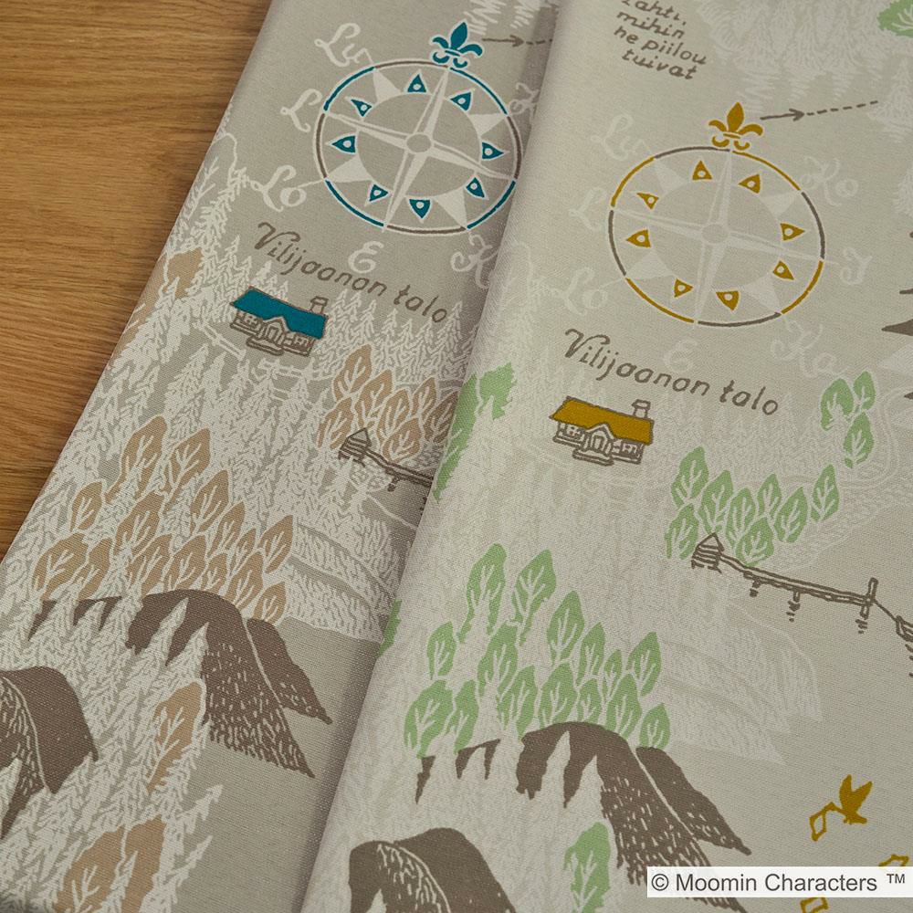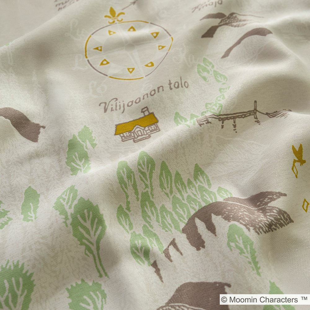 小説「ムーミン谷の夏まつり」の地図柄のデザインが登場です。地図の中で個性溢れるキャラクターたちが、楽しそうに暮らす情景が描かれています。まるで空からムーミン谷を覗いているかのような、ムーミンの世界をそのまま感じられる地図のデザイン。地図を辿ってお部屋でムーミンの世界に浸ってみませんか?