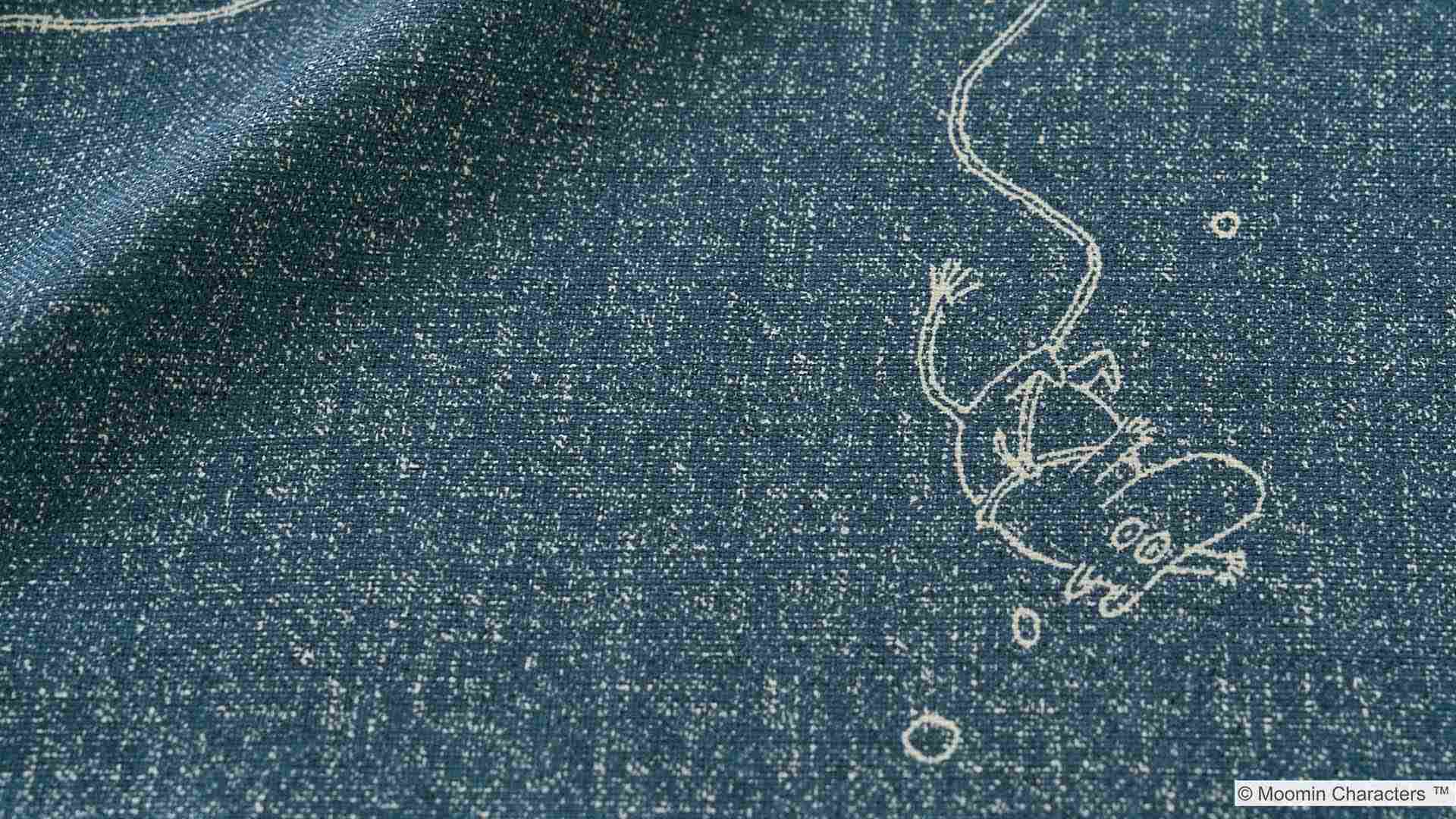 冒険をするムーミンたち。コミカルな描写が愛らしいドレープカーテンが登場です。デニムライクな表情のベースに、小説「ムーミン谷の彗星」の挿絵をプリントし、シンプルに仕上げました。キャラクターたちのなんとも言えない表情に思わずクスッとしてしまう、ストーリー性のある、ユーモア溢れた商品です。