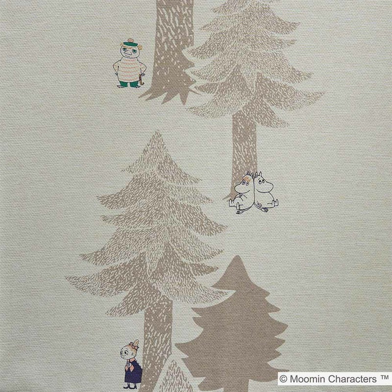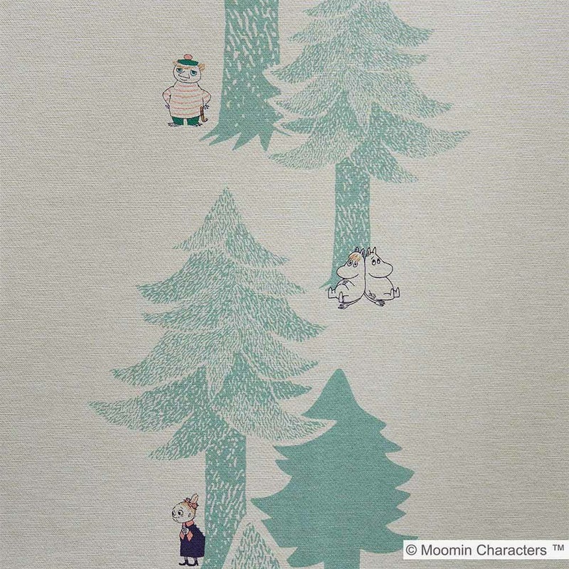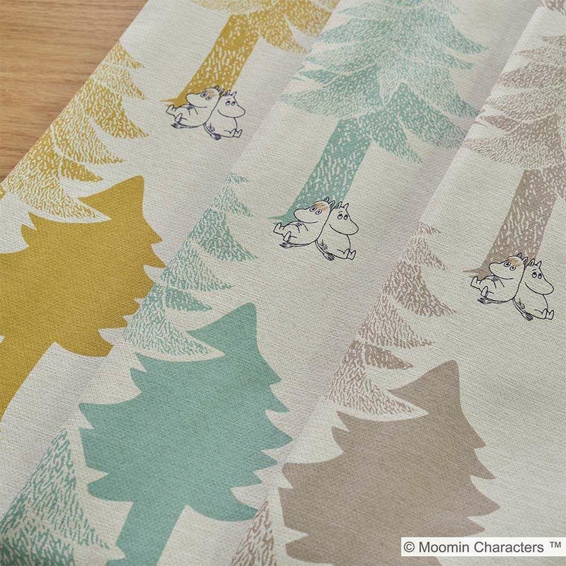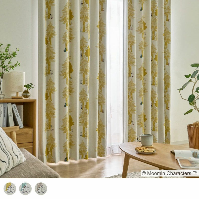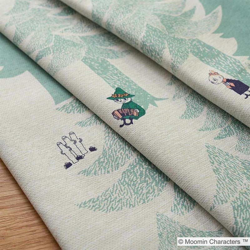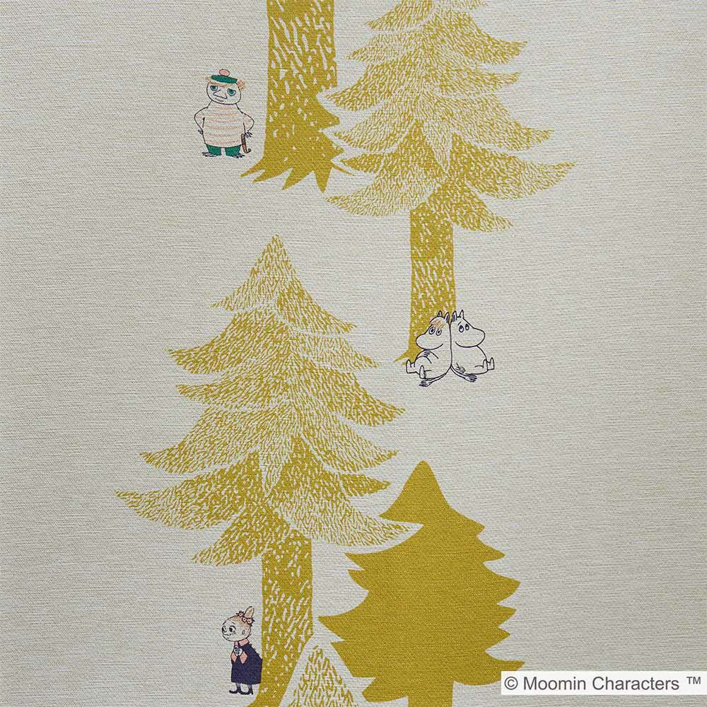 森で暮らす、ムーミンと仲間たちにほっこり。縦ストライプ状に並んだ北欧風の木立と、その間に覗くムーミン谷の仲間たちの姿が可愛らしい2級遮光ドレープカーテンです。