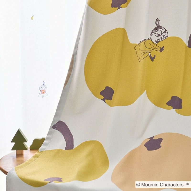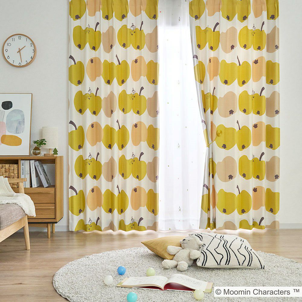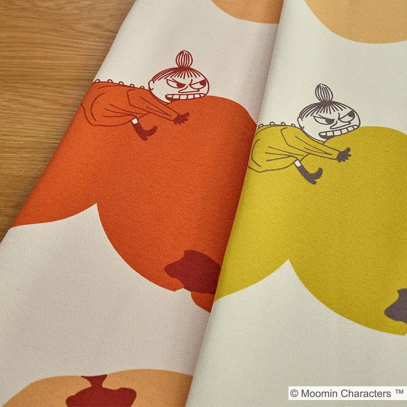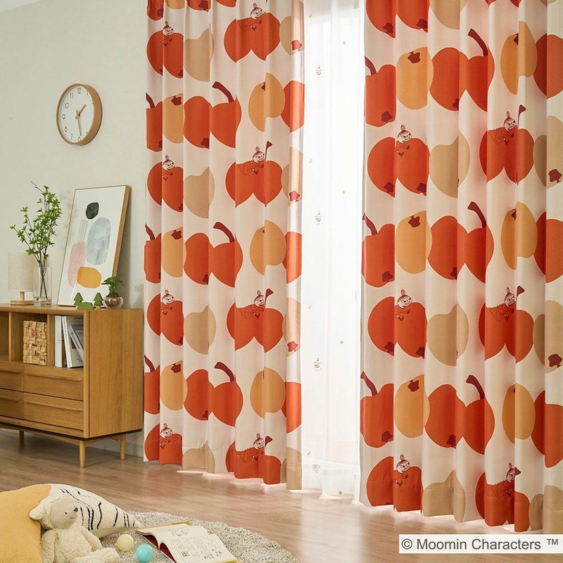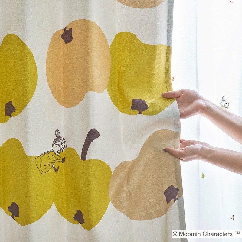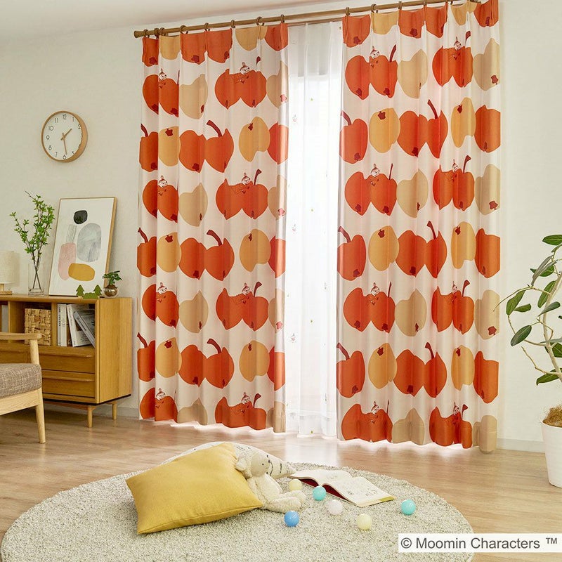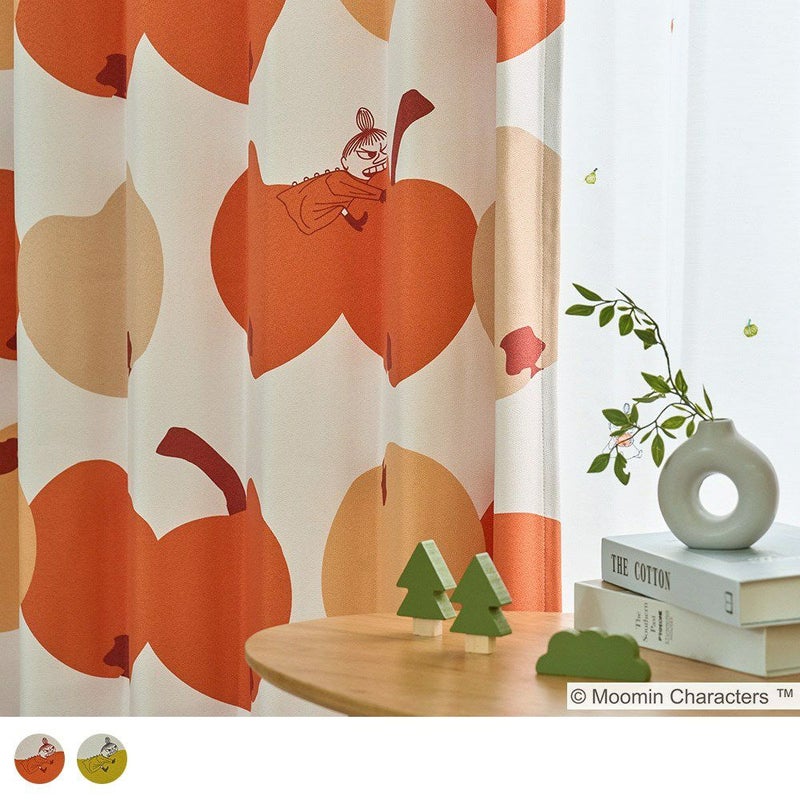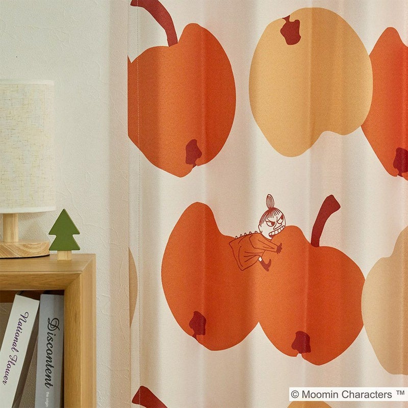 ムーミンでお馴染みのリトルミイが、ガブリ!とりんごにかじりつくデザインが可愛らしい遮光カーテンです。北欧デザインを彷彿させるコロコロの大ぶりなりんごモチーフが、部屋全体を明るく彩ります。