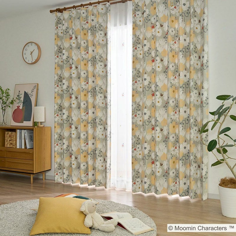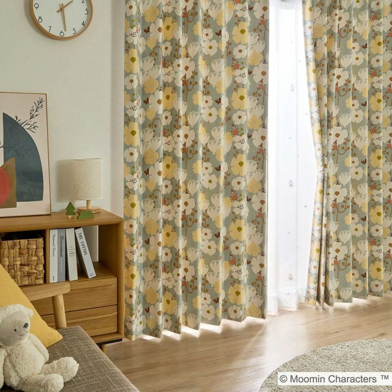 柔らかいタッチと淡い色味が癒される、フラワーパターンの遮光カーテンです。お花よりも小さなリトルミイが、様々な表情をのぞかせているかわいらしいデザイン。小花からひょっこり顔をのぞかせていたり、横目でじっとお花を見つめていたり、後ろを向いていたり。様々なミイの表情をお楽しみください♪