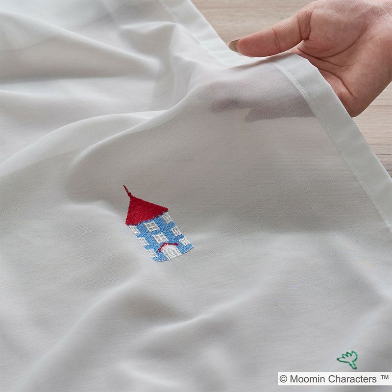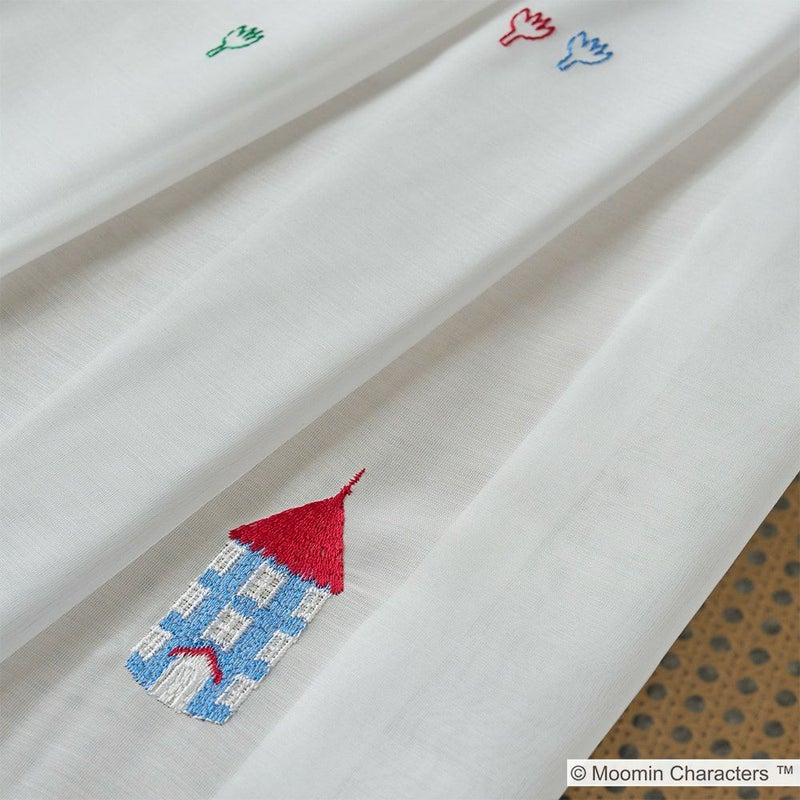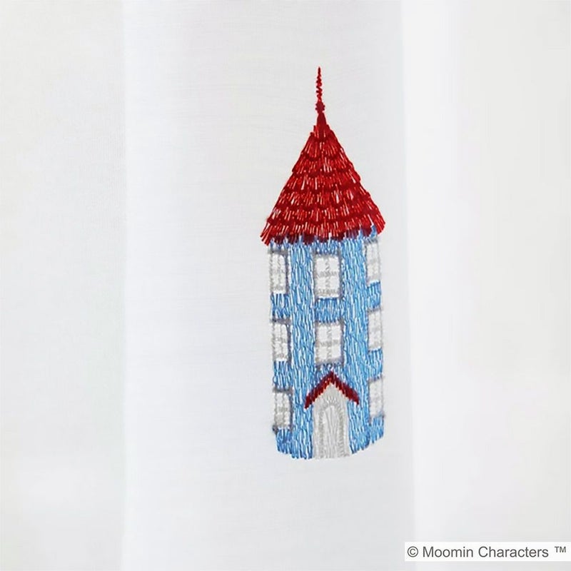 ムーミン一家が暮らす、赤と青のムーミンハウスを刺繍で表現。色鮮やかなムーミンハウスは、窓辺を彩るアクセントに!ワッペンのような立体感が、シンプルなボイル地に存在感を放ちます。ほっこりするようなチューリップの刺繍も可愛らしい!