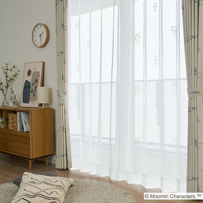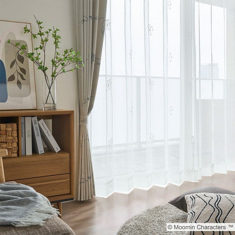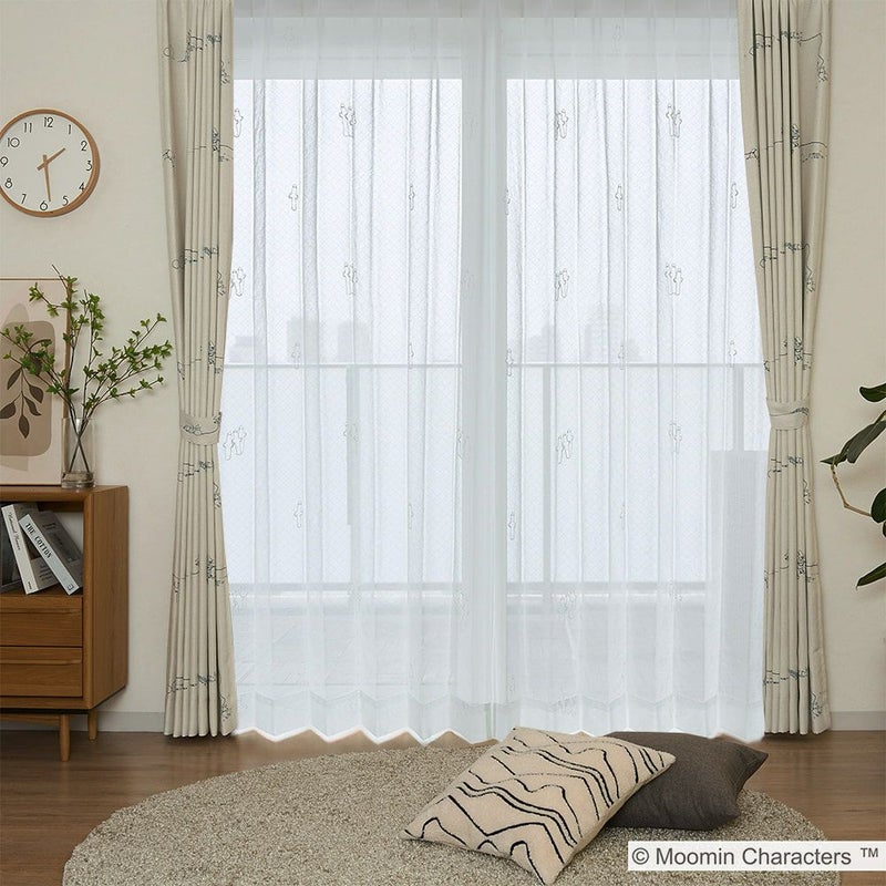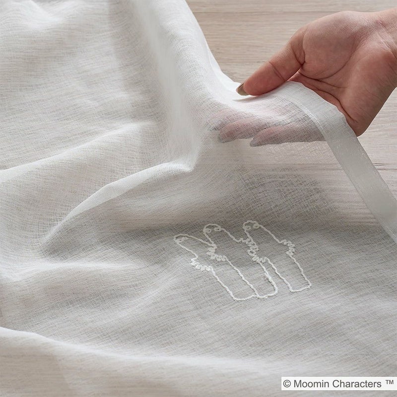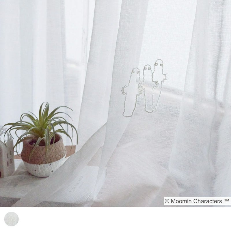 ニョロニョロファンにはたまらない!ムーミンに登場する大人気のキャラクター「ニョロニョロ」が刺繍されたシンプルなボイルレースカーテンが登場です。
