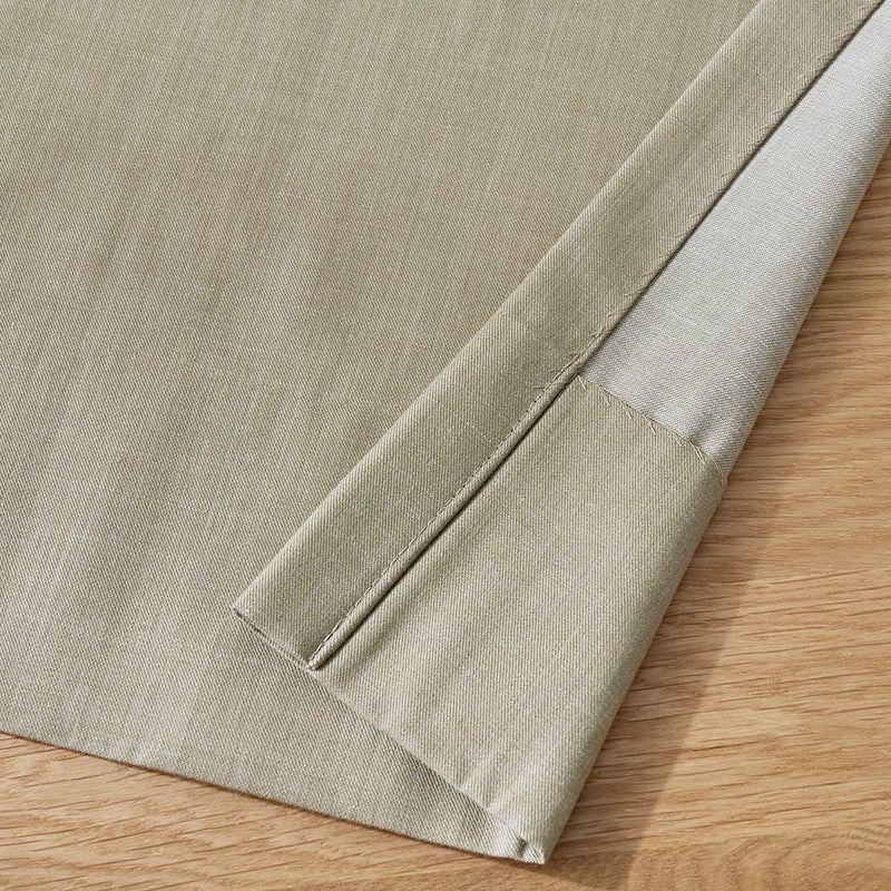 カーテンの上部はぐらつき防止アジャストフックを使用し、サイドや裾部分には表面に縫い目が目立ちにくい「すくい縫い」を採用しています。また、両サイドは約2.5cm3つ折。裾は10cm3つ折で、両サイドの裾にはあえてウェイト(おもり)を入れておりません。高品質な生地そのもののしなやかさで、広がりを抑えてすっきりした姿を保ってくれます。