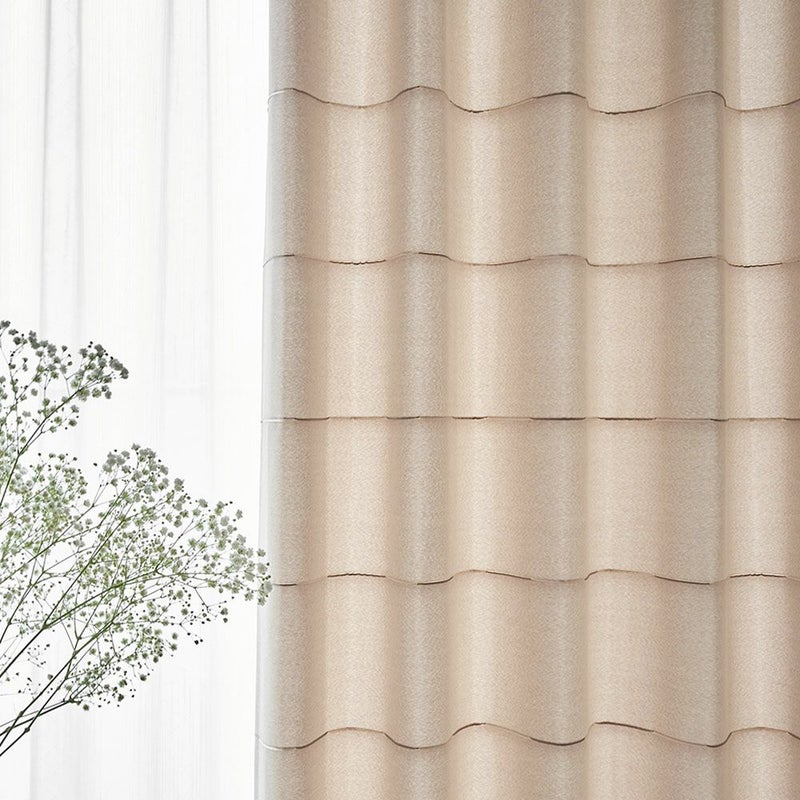 やわらかく光を通してくれる軽やかな生地でありながら、ほどよいハリと厚みを感じます。触れた瞬間、上質さが伝わるテキスタイルは、毎日の開け閉めを特別な瞬間にしてくれる。