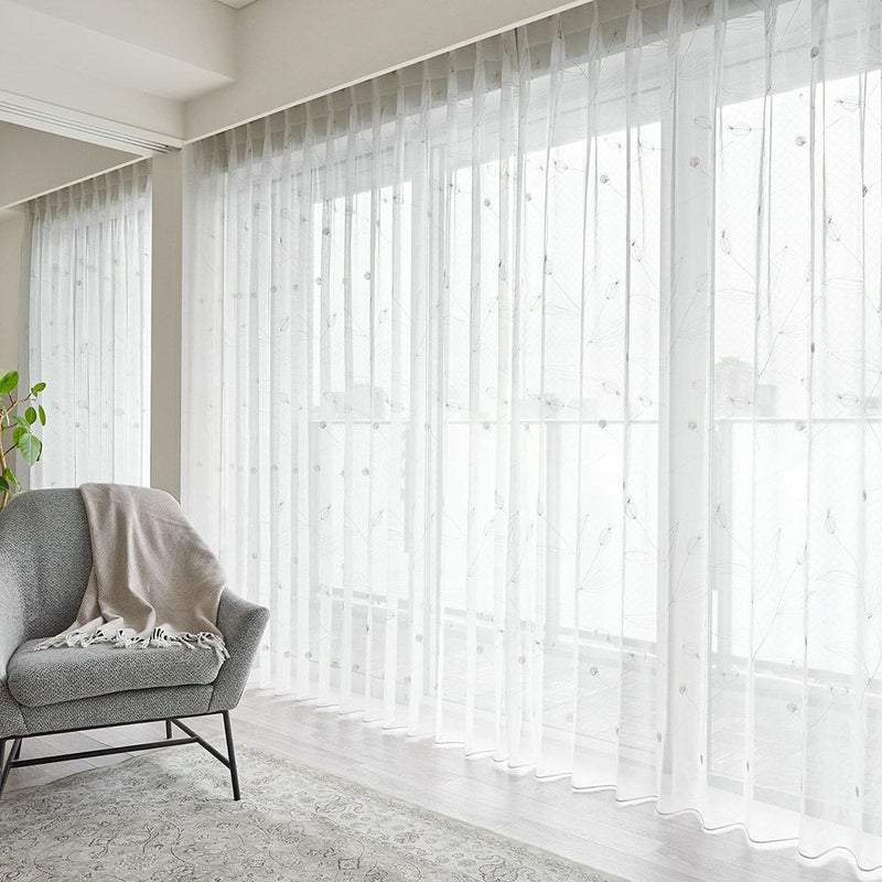 植物の実をモチーフにした柔らかな手書きタッチの刺繍が全面に施された、贅沢な刺繍レースカーテン。手書きタッチでやわらかさを演出しつつも、カーテン全面に刺繍を施したデザインからは上品さも感じられます。上質な北欧スタイルにふさわしい、エンブロイダリーレースカーテンをお楽しみ下さい。