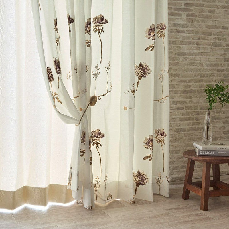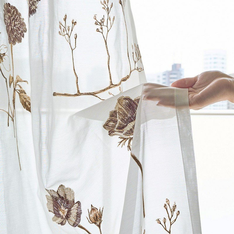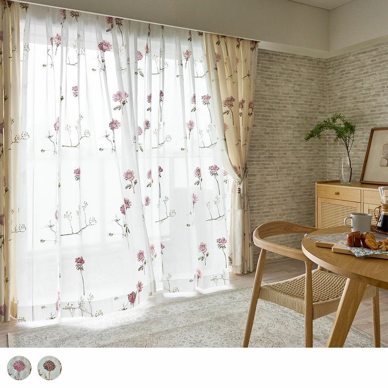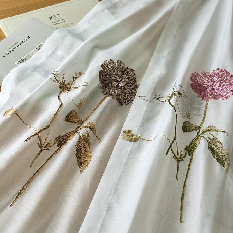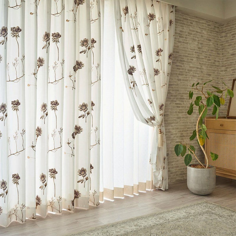 繊細な刺繍の花々が、光に照らされてそっと浮かび上がるレースカーテン。 上質な美しさに、ほどよい遮像性とUVカット機能を兼ね備え、日常に安心感を与えてくれます。「きれい」だけで終わらない、暮らしにやさしく寄り添う1枚。主張しすぎず、それでいて確かな華やぎを添える佇まいは、北欧らしい落ち着きの中に、女性らしいやわらかさを感じさせてくれます。
