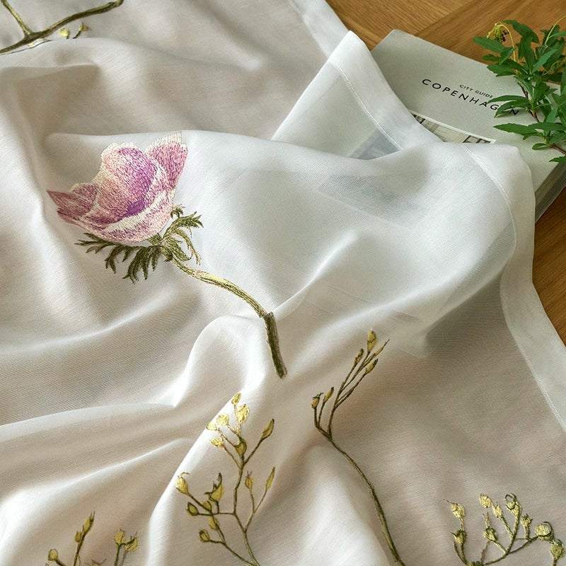 ふんわりと揺れる刺繍の花々が、心の奥までやさしく届く。窓辺に広がるその光景は、まるで小さな花畑のよう。 朝の光を透かして咲き、午後にはそよ風に揺れる。そんなささやかな変化に気づける日常が、きっと特別に感じられるはずです。お気に入りの空間で、あなたらしい時間を過ごしてみませんか?