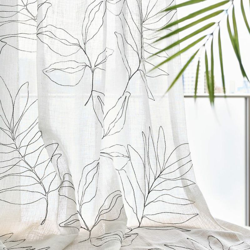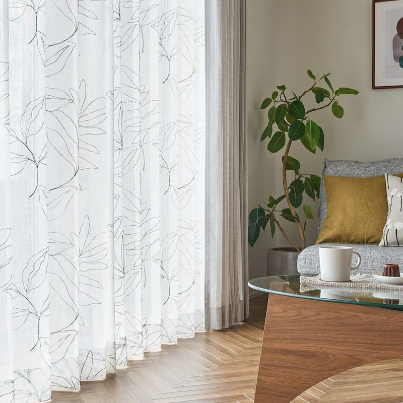 窓いっぱいに施されたリーフ柄がリゾート感を演出する、贅沢なエンブロイダリーレースが登場しました。のびやかに描かれたリーフは大柄でありながら、モノトーンなのでお部屋馴染みも抜群。北欧特有の心地よい空気感と優しい雰囲気も演出します。レースカーテン全面に刺繍を施した贅沢なデザインをお楽しみください。