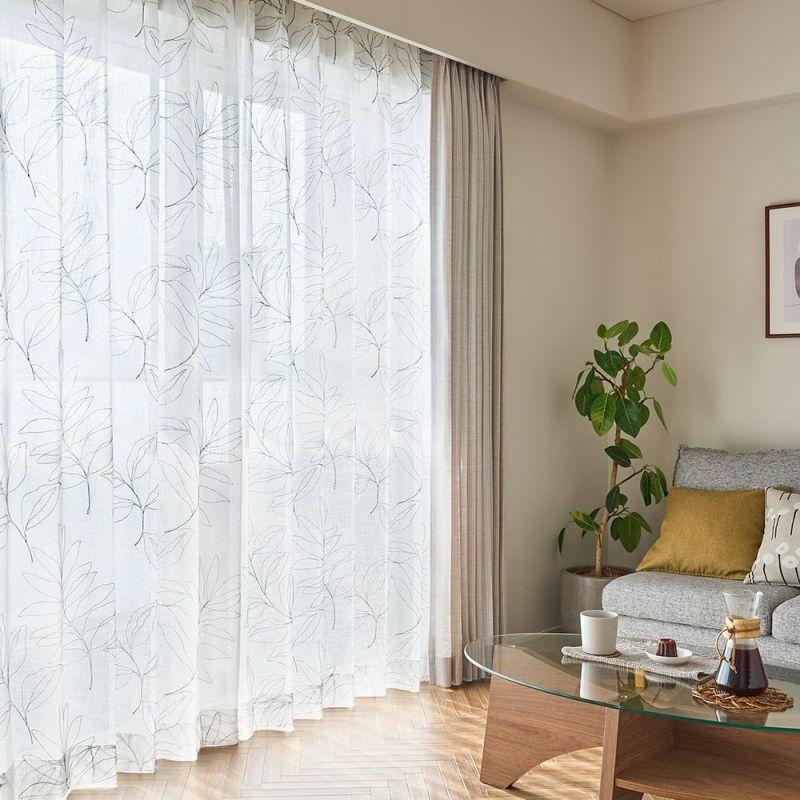 リゾートのムード感漂うリーフ柄のレースは、ゆったりとした上質な空間を演出し、日々の生活に安らぎを与えてくれます。自然の温もりを取り入れた北欧インテリアは、リーフデザインとの相性も抜群。北欧モダンもリゾートな雰囲気も叶うレースで、ゆったりとした時間をお過ごし下さい。