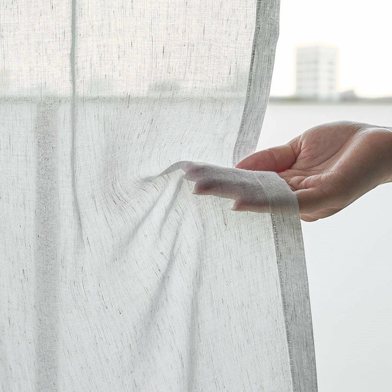 節感のある天然素材風の質感が魅力のレースカーテン<ルミッカ>。広窓仕様のシームレス仕立てで、開放感のある窓辺をすっきりと演出します。光を透かすと、やさしいニュアンスが生まれ、空間全体に穏やかなリズムを与えてくれるのも魅力。裾をくるりと縁取る巻きロックがさりげないアクセントになり、北欧ナチュラルインテリアを一層引き立てます。北欧レースカーテンならではの自然体な風合いで、毎日の暮らしをやさしく包み込んでくれる存在です。