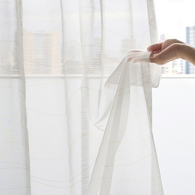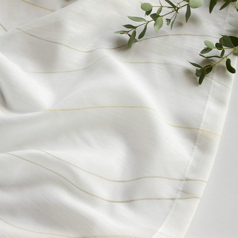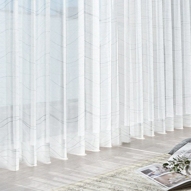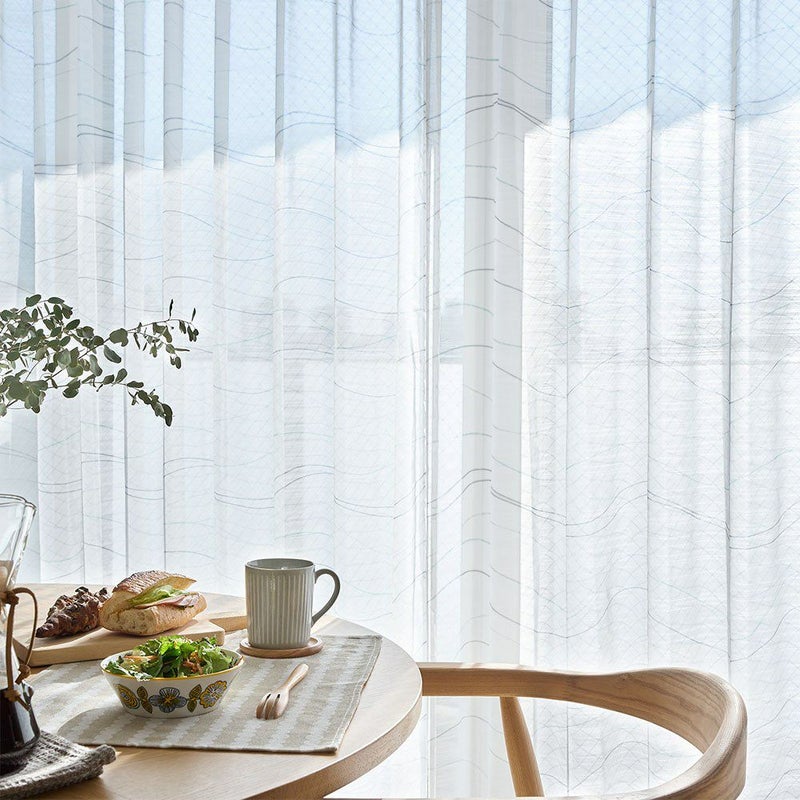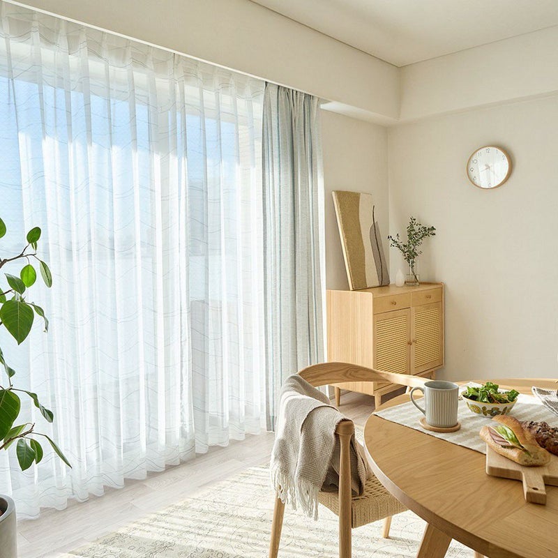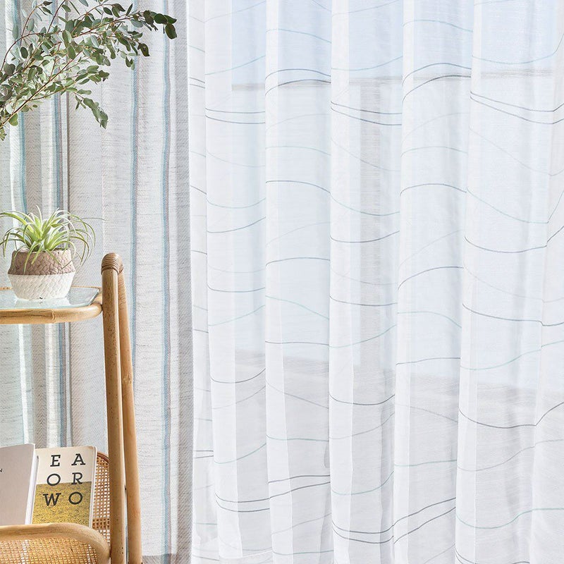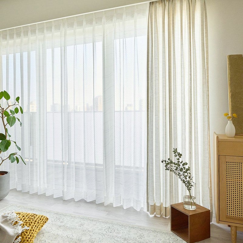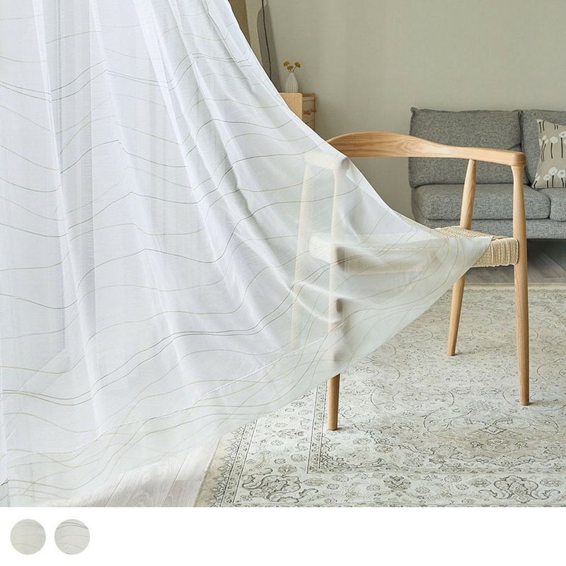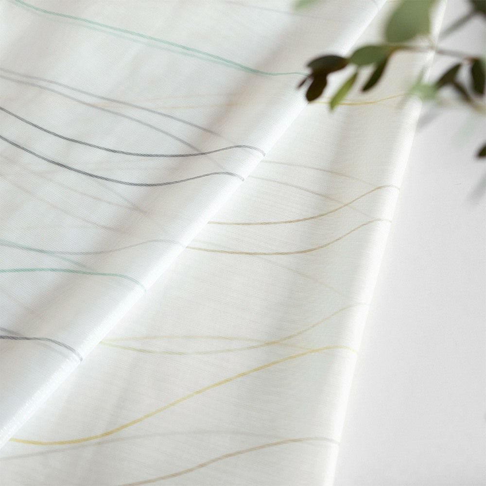 控えめだけどPOPでお洒落なカラーリングのラインが描かれたレースカーテンを飾れば、窓辺を眺める時間もきっと楽しいひと時に♪全面にプリントされたゆるやかなラインは、リズムカルに流れる波のよう。見ているだけで心が弾むようなレースカーテンを窓辺に。