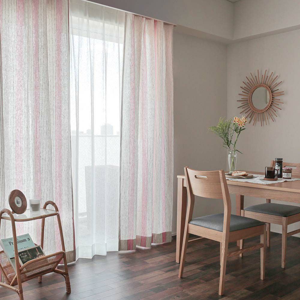 やさしく美しい透け感があるので暗くなり過ぎず、窓辺を明るい印象に変えてくれます。暮らしのなかで1日の変化を自然に感じることができるカーテンです。