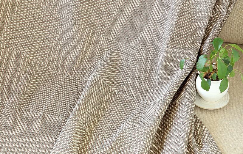 一見無地のようにも見えるカーテンですが、適度な光沢もあるダイヤ柄のデザインになっています。