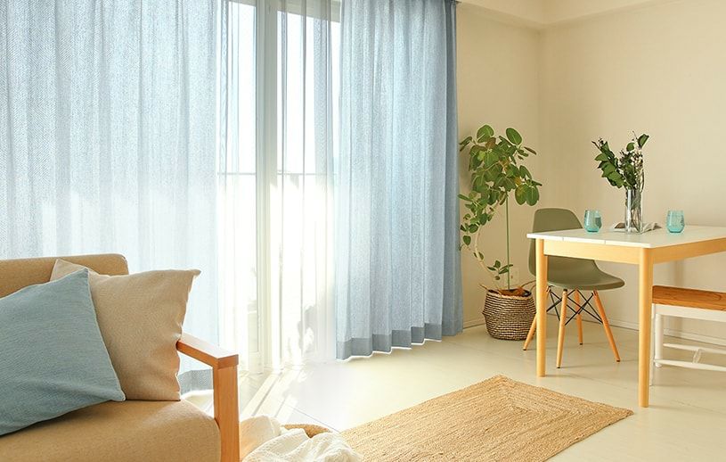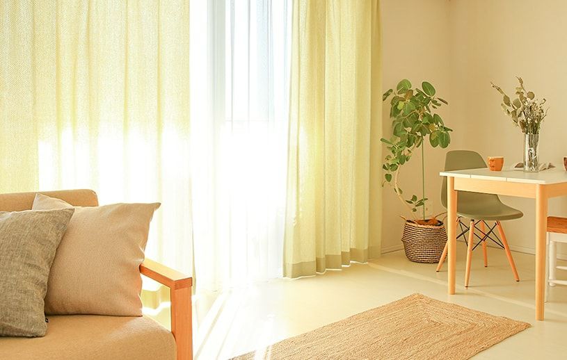 リビングなど、いつも人が集まる空間は明るいお部屋でありたい。そんな暮らしにおすすめのドレープカーテンです。