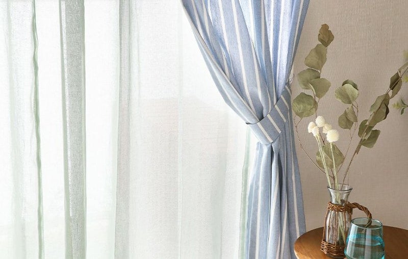 爽やかで癒さる、ブルーのカーテンで新しい1日を迎えませんか?綿麻ゆえに、それぞれの素材が持つ良さを併せもつ相乗効果があります。