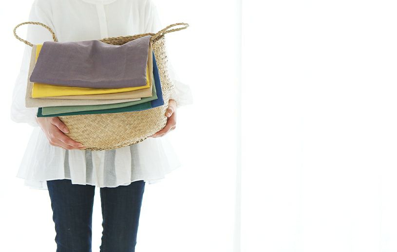 リネンの特徴は、吸水性が高く通気性も良い為湿った季節にはさらりとした湿度を保ち、寒い季節には繊維の中に空気を含み保温効果もあります。 また、丈夫な素材の為長年愛用する事ができ、使い込むことで柔らかさが増し、その風合いに愛着を感じる事が出来るのが最大の特徴かもしれません。そして汚れにくく抗菌性があるため、アレルギーやお子様のいるご家庭でも愛用されます。 レーヨンにはシルクのように美しい光沢ととろんとした風合いのドレープ性があり、エレガントな質感です。他の繊維とかけ合わせる事でその良さを向上させてくれるのです。