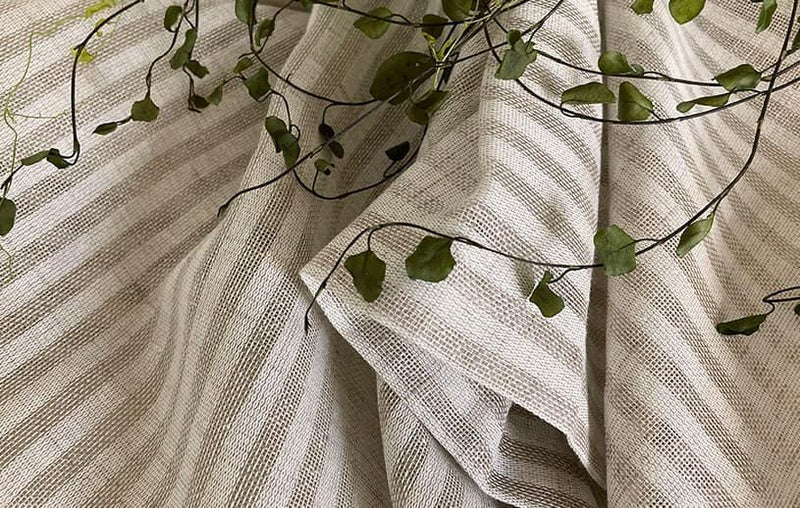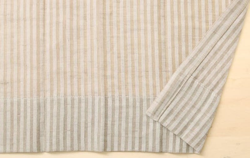 涼やかな透け感がありながらも、温かみのあるカラーのストライプ柄が、ナチュラルなインテリアにぴったりです。