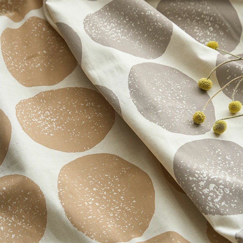 カラーは生成り×ベージュ、生成り×ライトグレーの2種類。生地に染みこまない顔料プリントを使っているから、柄がはっきりと浮き出るように見えるところがポイント。ナチュラルだけど、ぼやっとしないモダンな印象です。