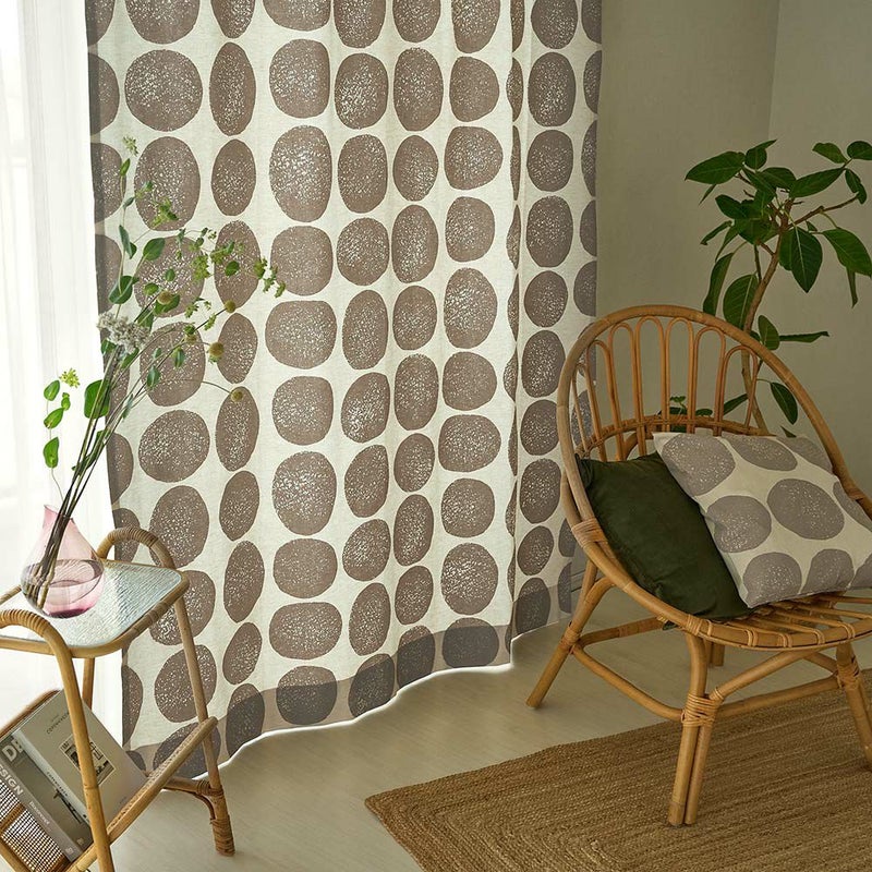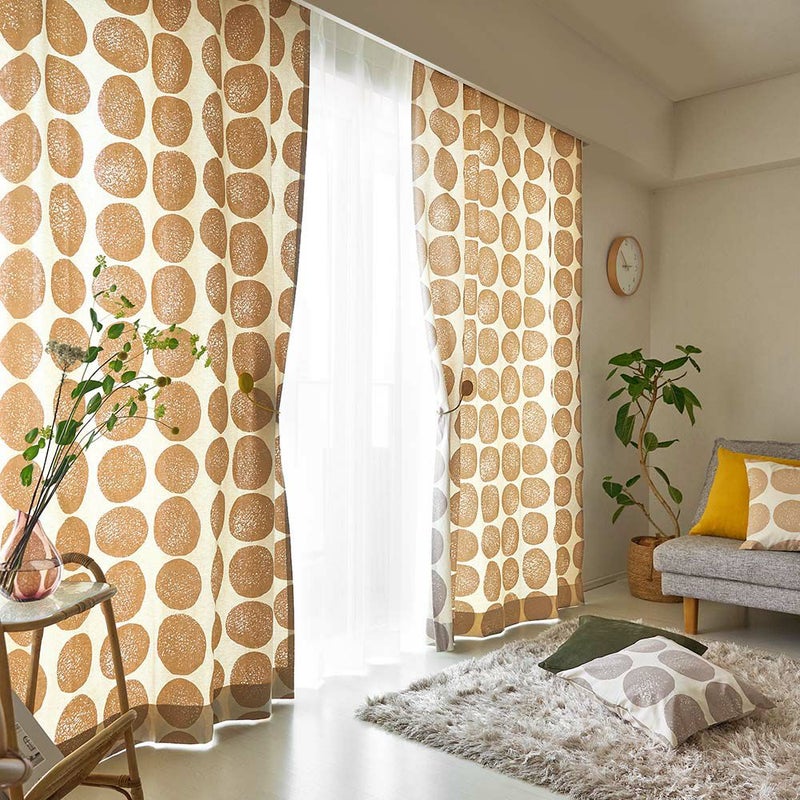 ナチュラルな自然素材の風合いを楽しめるカーテンです。 程よく日ざしを取り入れ、気持ちのよい風を運んでくれます。 北欧の暮らしみたいな楽しくて開放的なお部屋がお好きな方にぴったり。ぜひ、光を受けて明るく輝くテキスタイルをお楽しみください。