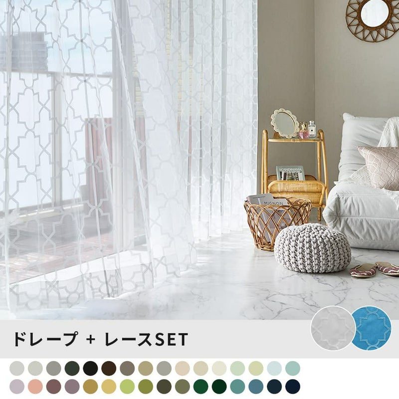 SNSを中心に人気が高まり、今では女性の憧れのスタイル<モロッコ風インテリア>。そんな空間をシンプルに楽しめる、モロッコタイル柄のオパールレースカーテン!モロッコ愛が溢れつつも、日常に馴染むシンプルさが嬉しい1枚です。