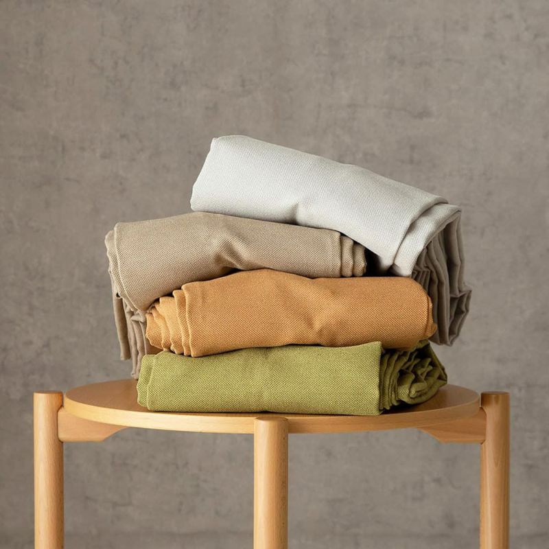 世の中の女性がこよなく愛すオリーブ。そんなオリーブの葉を染料にしたカーテンは、リラクシー感あふれる深い色合い。窓辺にかけて陽の光を通すと、どこかファッショナブルな存在感を放ちます。