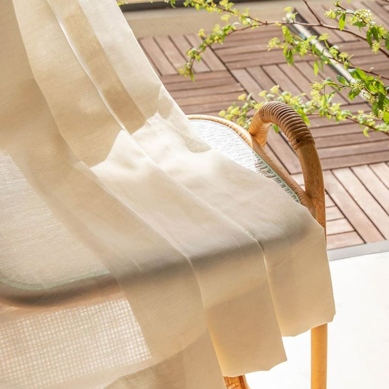 うっすらと地模様が入っているスパンボイル生地。この模様があるだけで透け感がぐんと優しい印象に。レースカーテンを、さらに穏やかな表情に仕上げてくれます。