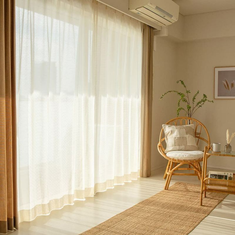やすらぎと温もりで私たちをそっと包み込んでくれるヒノキ。そんな誰からも愛されるヒノキの風合いを、レースカーテンにそのまま落とし込みました。ナチュラルで素朴な色合いは、インテリアにも優しく溶け込んでくれます。