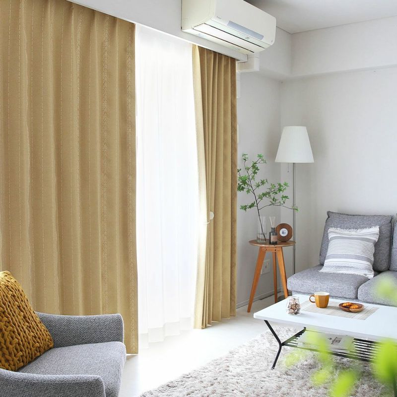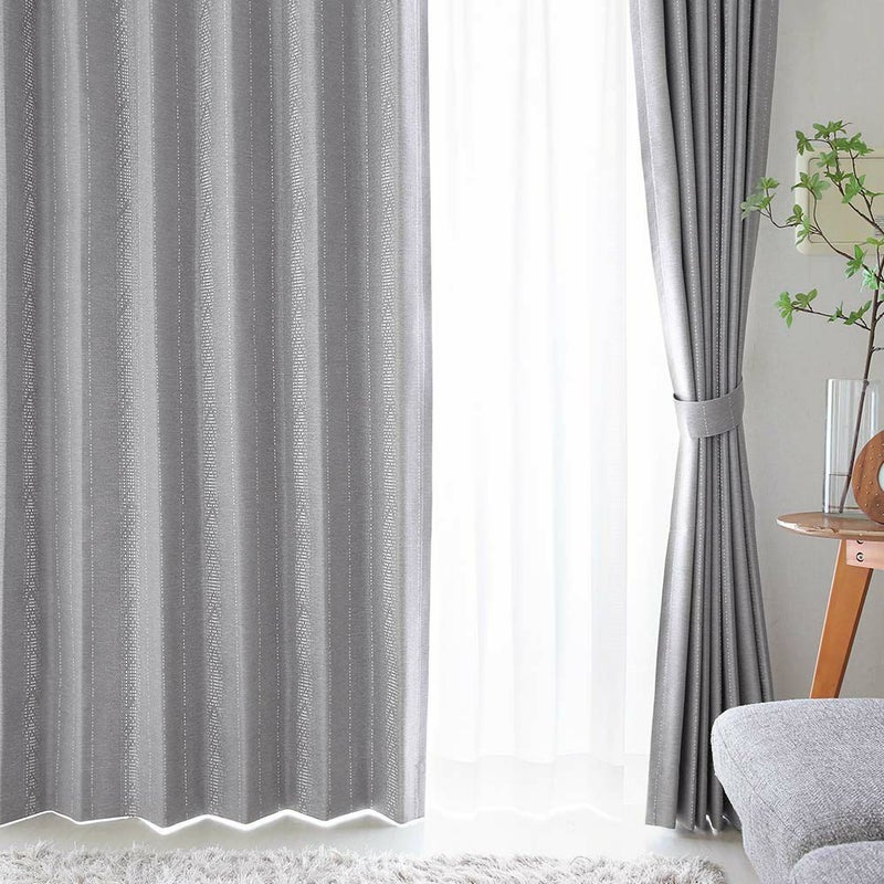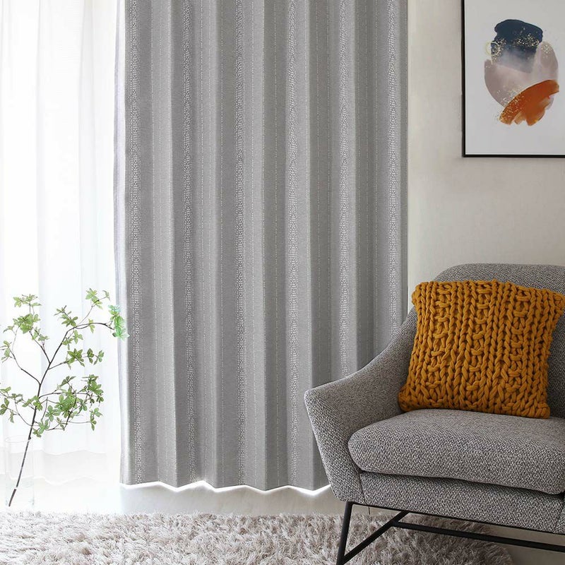 光沢糸が描くストライプが美しい、完全遮光カーテン