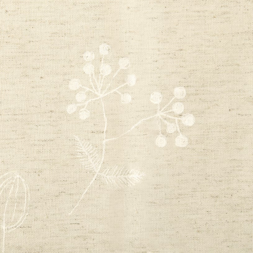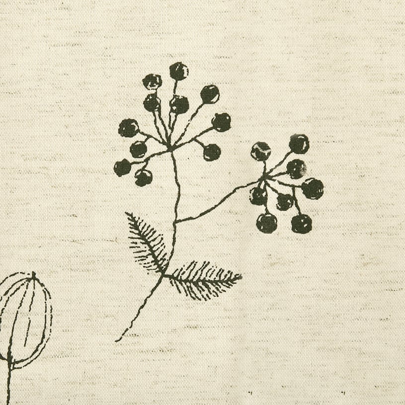 コットン素材をミックスしたナチュラルな生地に、手書き風の草花のイラストをプリントした可愛らしいカーテン。