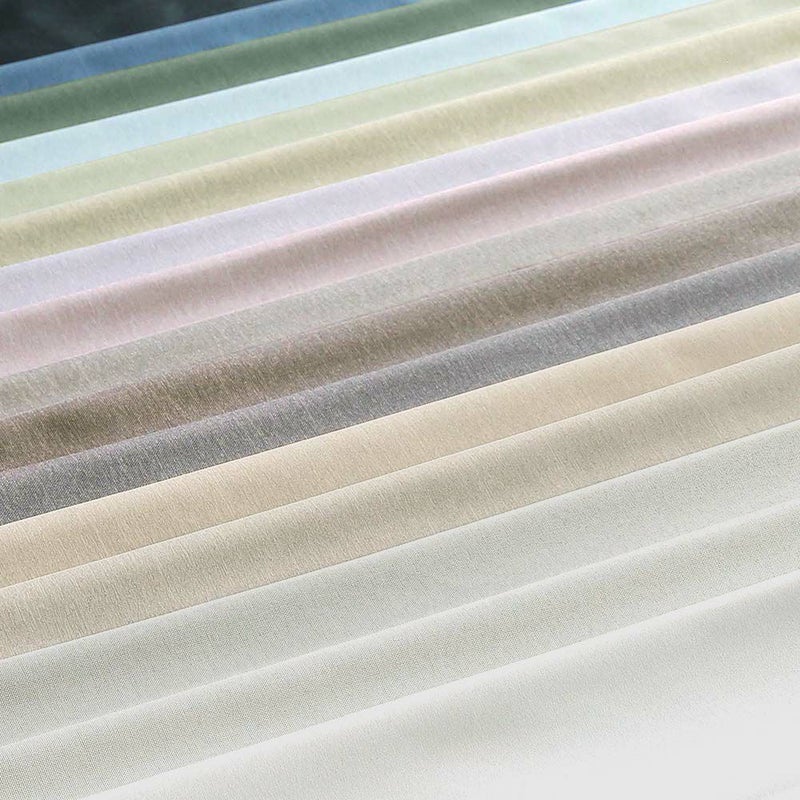 高機能な完全遮光カーテンなのに、薄く軽やかなファブリック。程よいハリ感があり、しなやかな触り心地なので毎日のカーテンの開け閉めもスムーズに。