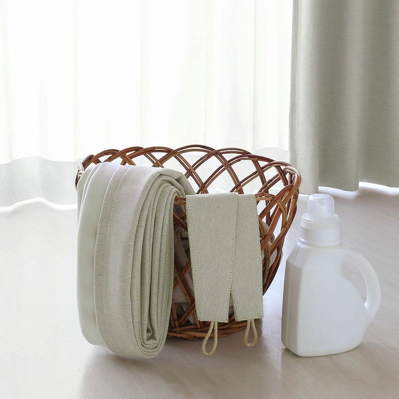 「せっかく選んだ可愛いカーテンは、ずっと清潔に保ちたい」そんな想いに応えるウォッシャブル機能つき。ご自宅の洗濯機で丸洗い可能です!定期的なメンテナンスで、お気に入りの空間を綺麗にキープ。