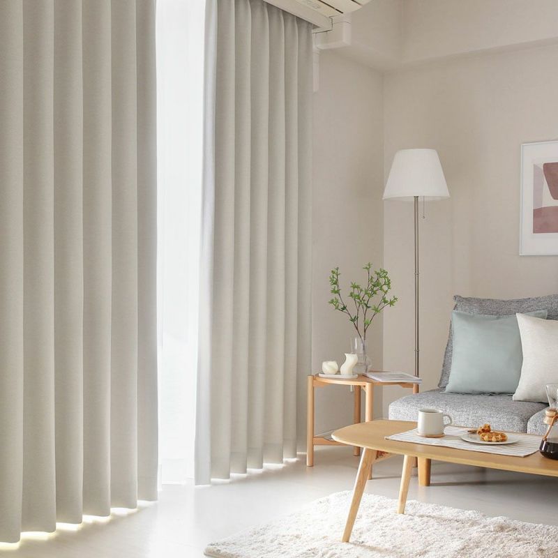 【撮影コーディネート】レースカーテン :<アムール>やさしい色をこよなく愛するディレクターが提案する「優しいキモチになれる」お部屋づくり。そんな空間にふさわしい、ニュアンスカラーの1級遮光カーテン「優」。ざっくりとした素朴な生地感も「やさしいインテリア」にぴったり。さらに、優れた遮光性・遮熱・保温、ウォッシャブル機能に加え、ドレープの美しさを保つライトウェーブ加工まで!幸せムードたっぷりの、寛ぎのリビングにぴったりのオーダーカーテンです。