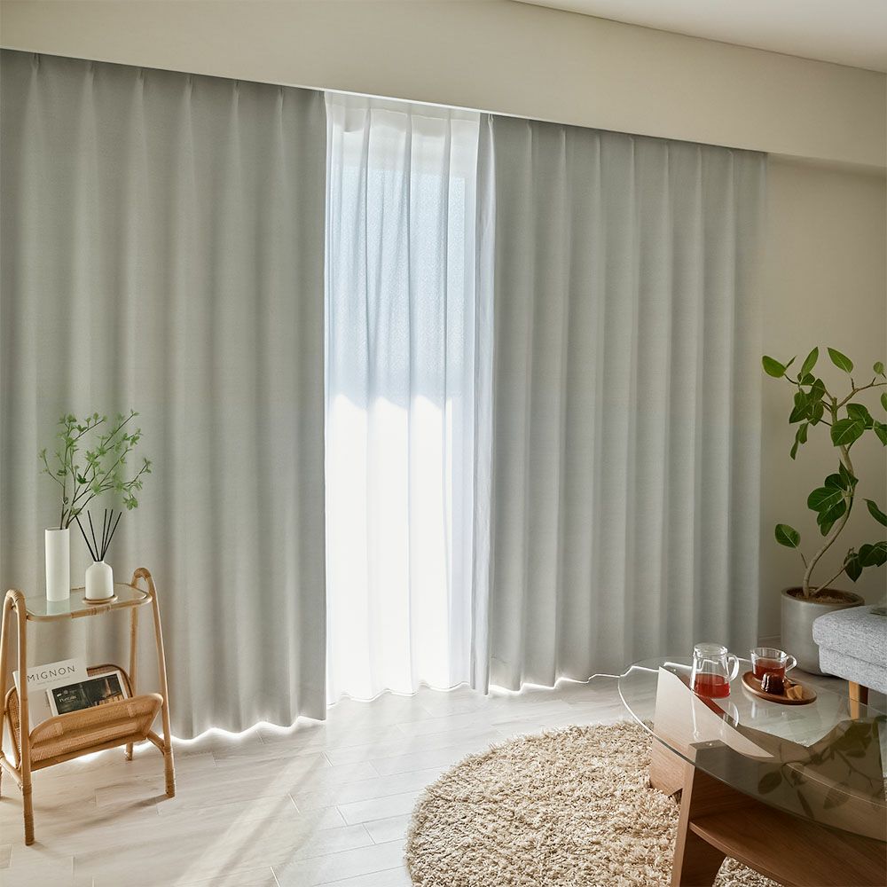 遮光率が限りなく100%に近い完全遮光カーテン。朝日や外灯などの外の光をしっかりと遮ることで、快適な睡眠環境づくりに一役買ってくれます。ホワイトやベージュなどの淡い色のカーテンでも、強い日差しをしっかり遮ってくれるのが完全遮光カーテンのすごいところ。好みのインテリアを叶えつつ、暮らしに合わせた明るさのコントロールが可能です。