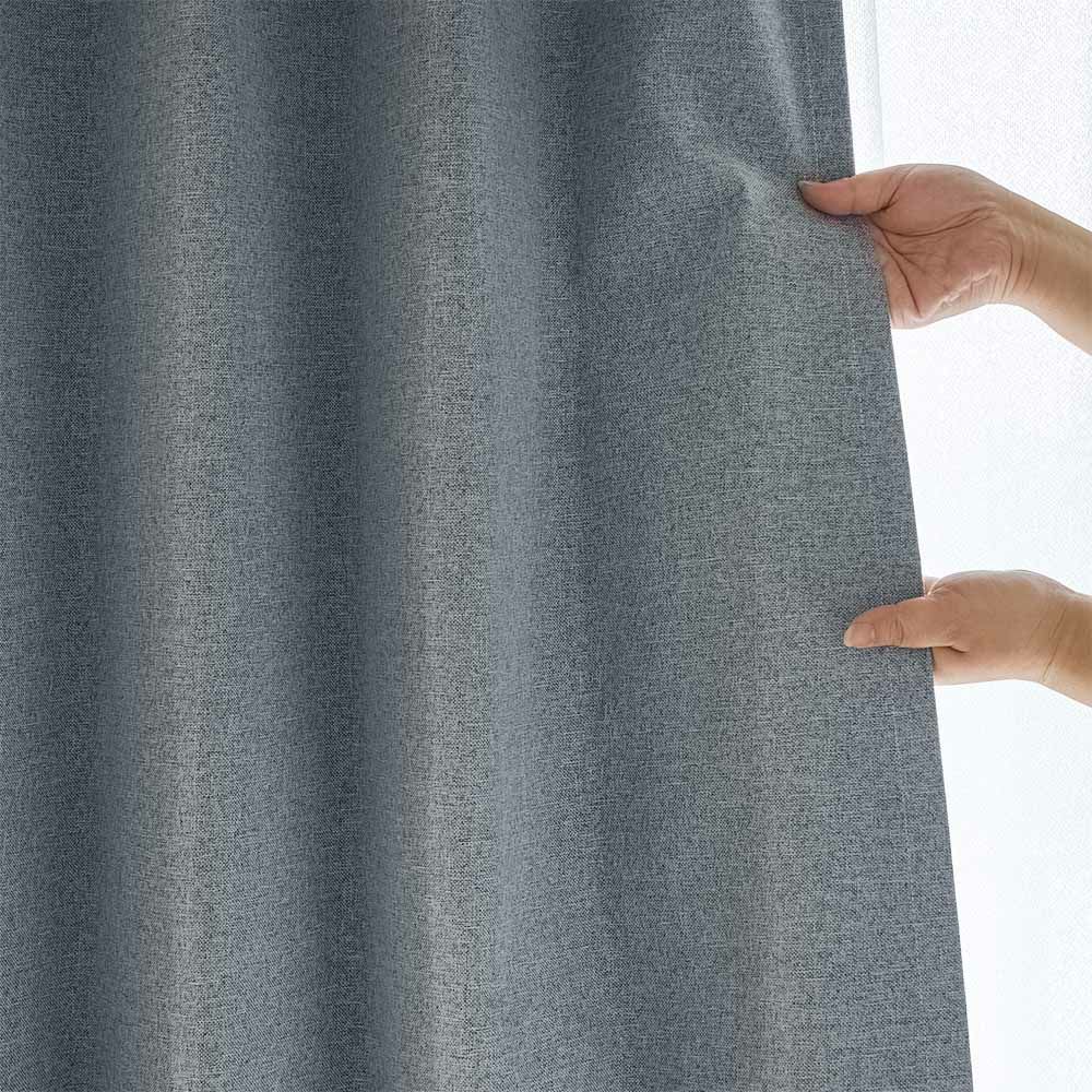 通常、巾の広いサイズのカーテンは「巾継ぎ」による縦方向の継ぎ目が発生します。シームレスのオーダーカーテンは、巾の広い生地を横方向に使用することで、どんなに巾のある大きな窓でも継ぎ目のないお仕立てが可能に。見た目の美しさもさることながら、巾継ぎ部分のステッチからのわずかな光漏れを防いでくれる効果も。遮光性を確保したい寝室にぴったりの1枚です。※縫製に際して発生する左右端と裾のステッチ部分からは光漏れが発生する可能性があります。