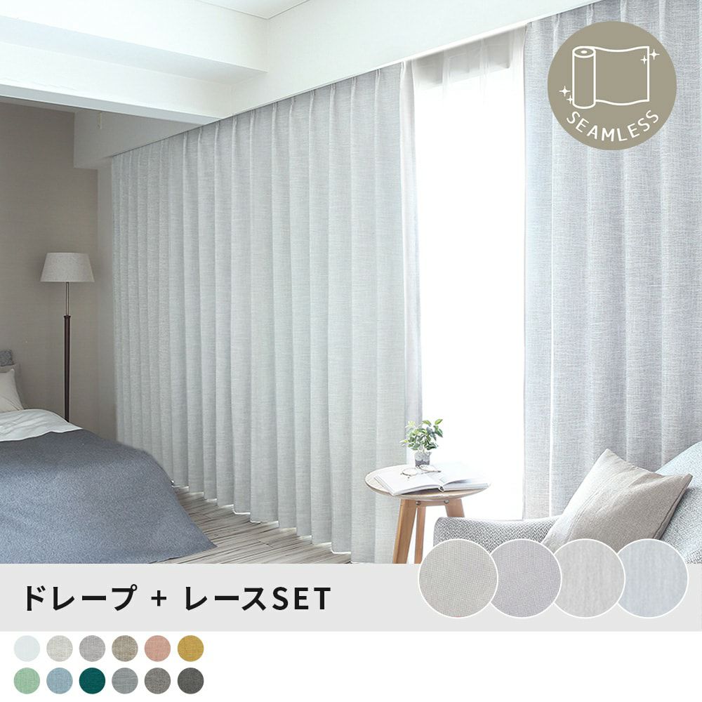 【最短・翌日出荷】レースカーテンセット もっと眠りにこだわるあなたのための完全遮光シームレスカーテン×柔らかなボイルレースセット <シームレス メローセット>
