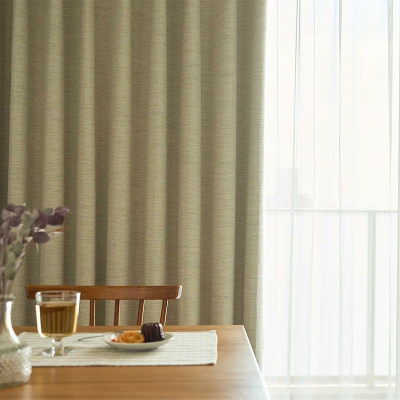 大好評の完全遮光×シームレスシリーズに、天然素材ライクな新アイテムが登場です。さらっとした素材感と、横方向に節(ふし)感が表現されたデザインが、広窓いっぱいにナチュラルな装いをプラス。もちろん、完全遮光なので機能性もばっちり◎ 機能性も見た目も妥協しないあなたにぴったりのオーダーカーテンです。