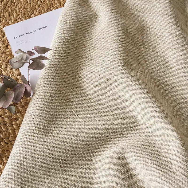 裏面にコーティングを施している分、一般的なドレープカーテンに比べるとやや固さのあるハリ感のある生地です。裏面はしっかりとコーティングされていますが、表面はファブリック感のあるさらりとした風合い。毎日触れるカーテンだからこそ、手触りの心地よさも外せません。