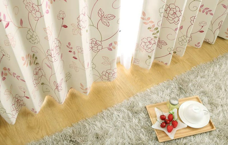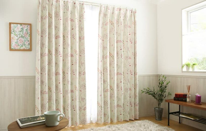 北欧 花柄 2級遮光カーテン 軽やかな柄表現で、すっきりとした印象の 北欧 デザインカーテン <ソフィー ピンク> / 1.5倍ヒダ(2つ山)縫製
