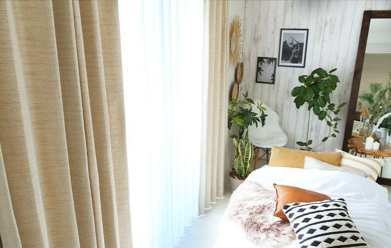BOHOStyleを無地のカーテンでインテリアをコーディネートするなら、ナチュラルなアースカラーがいいですね!