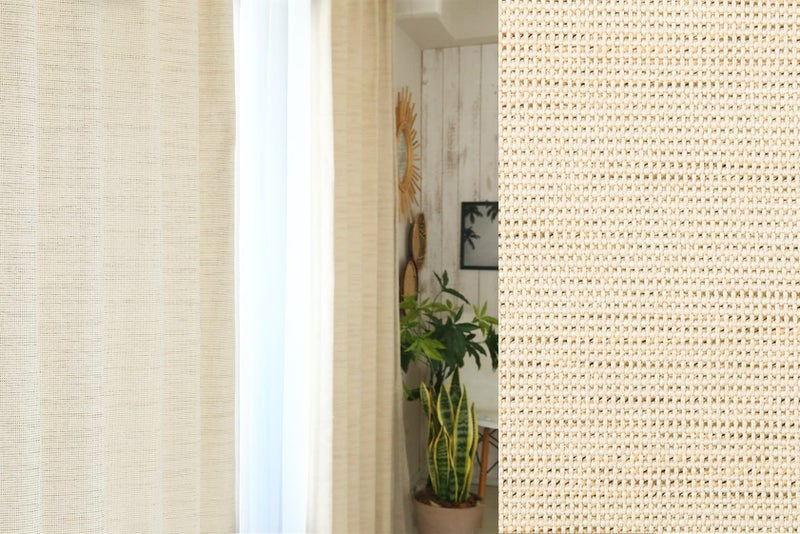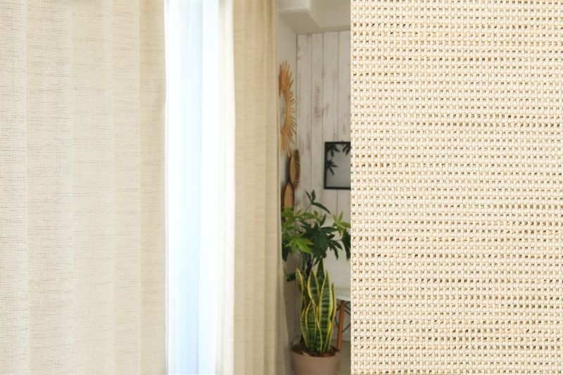 無地にあえて入れ込んだ濃い色の糸が、このカーテンに深みを持たせました。