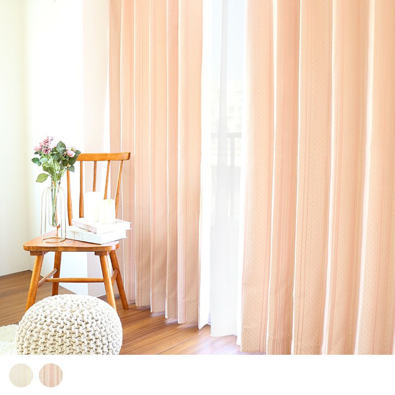 落ち着きのあるフェミニンなカラーとほどよく可愛いスクエアドットがマッチしたレースカーテン。