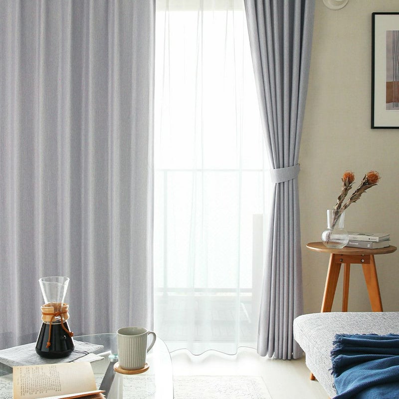 味のある杢調(もくちょう)で仕上げた、ストライプの織り感が魅力的な2級遮光カーテン。カジュアルさとスタイリッシュさがミックスしたファブリックに、遮光性も兼ね備えた一枚。空間をすっきり見せてくれる縦のラインが、ハンサムな窓辺を叶えるオーダーカーテンです。
